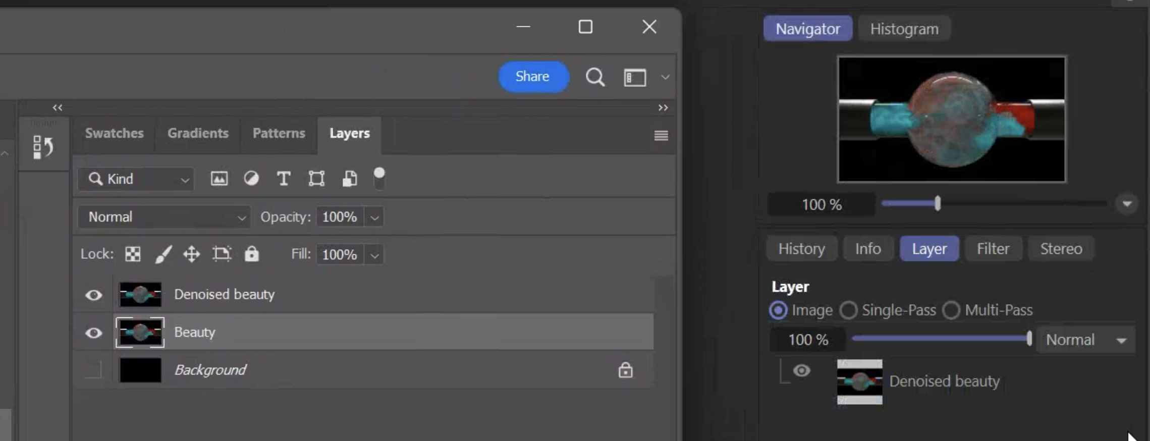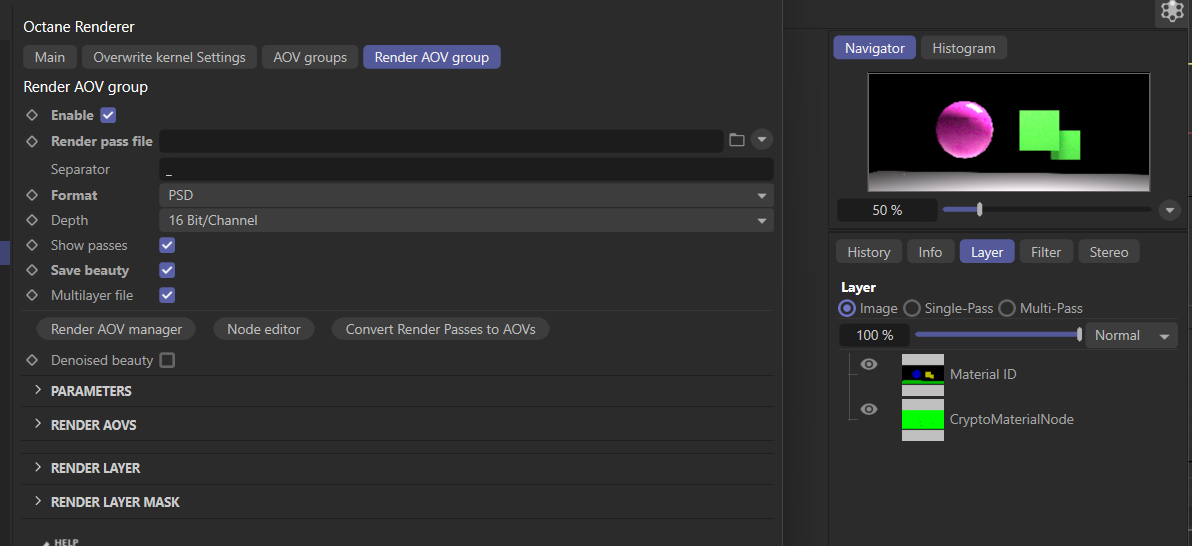 Please enable the Save Beauty option in Render AOV group tab, then open the .PSD file in Photoshop: