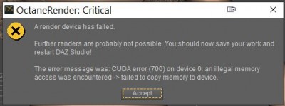2) Make sure you are running the latest version of the OctaneRender for DAZStudio plugin.