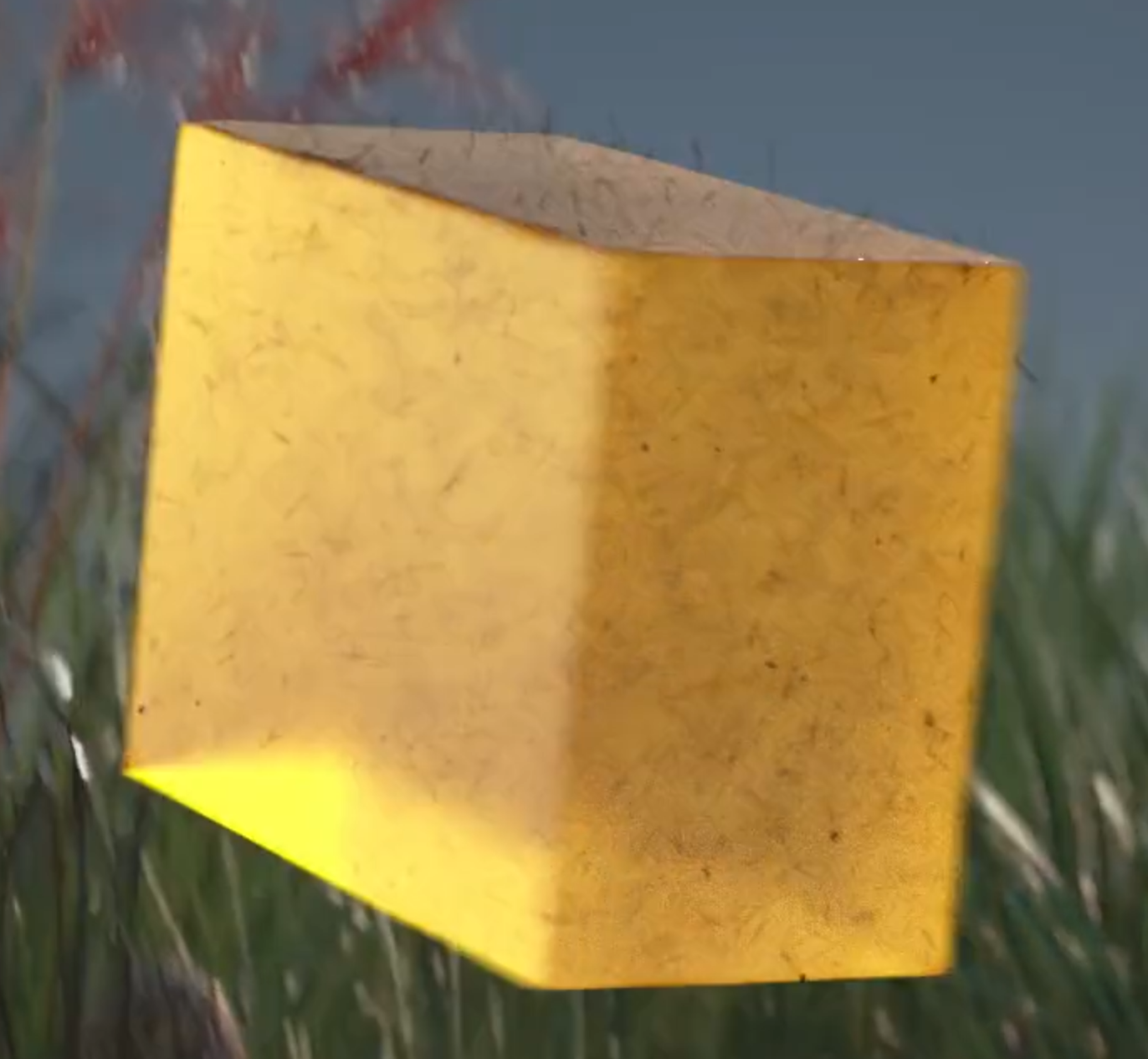At the time 00:05 when orange soap stands still you can see small black particles inside of it. This looks as expected. But right after that, when the soap ascends, if you watch carefully, you will see that those particles get a motion blur aligned in random directions. The particles stay at their places, just blurred. And the faster they move (with the soap) the longer these motion blur streaks are.