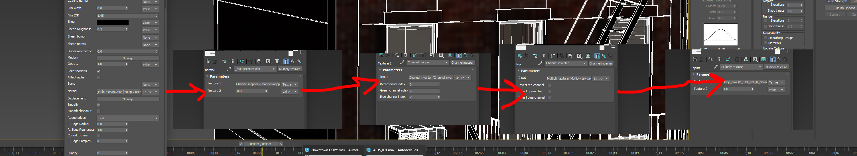 To support those flips, Octane need to have those Channel mapper and Channel inverter textures inserted.