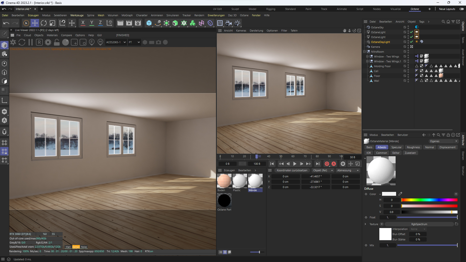 I got here my actual Result. I got only a Issue with the Denoiser. I am working on get the right Settings. The Walls look sloppy and there are Noises.