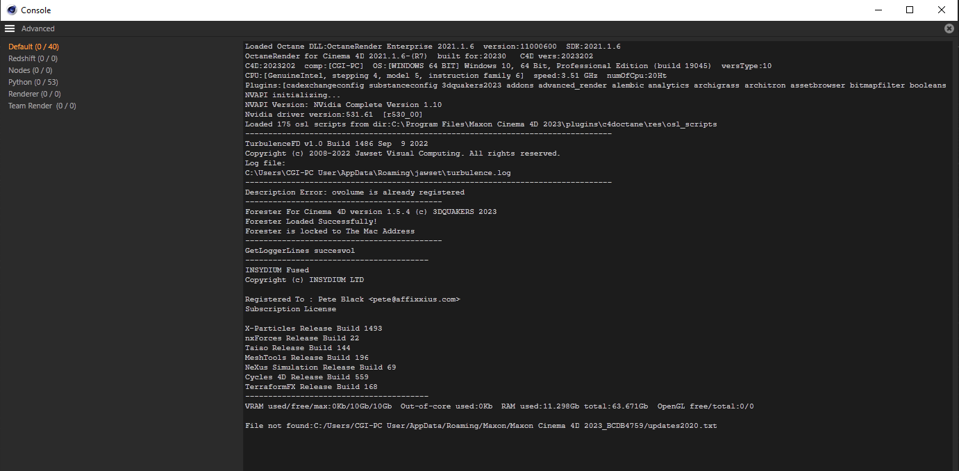 Please open c4d, then go to c4d menu Extensions/Console, (Shift+F10), and share a complete screenshot of the panel, or copy paste the default console output in your answer, thanks.