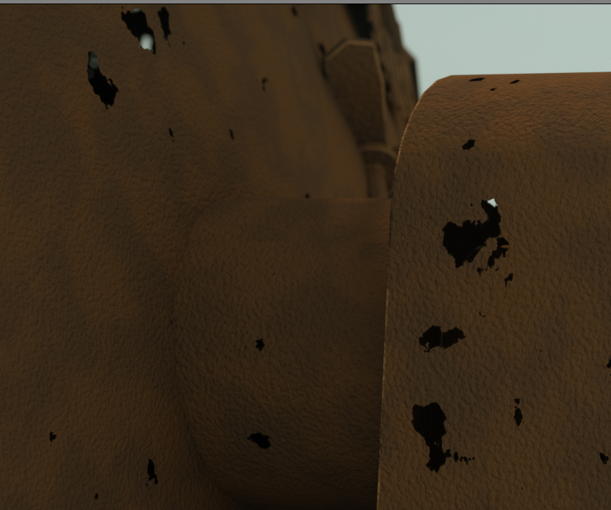 In the image you can see rusted metal holes. The holes were done using opacity with noise but they have no thickness. Anyway you can add some slider with adjustable thickness. It's just a thickness that can extend using mesh's normal.
