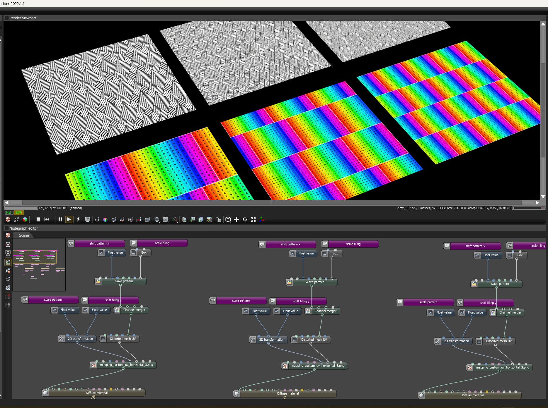 Thanks a lot!! This is a workaround, had to do some tests to find settings for scaling & shifting of tiles & pattern and worked better with box projection in wave pattern.