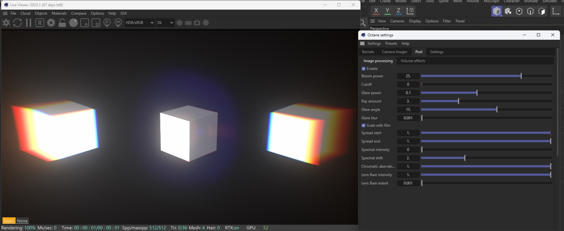 boxfx wrote:If I load an octane 2022 project into the new octane 2023, by default the chromatic aberration and lensflare sliders are set to full power. This means all old projects are guaranteed to not look anything like they originally did.