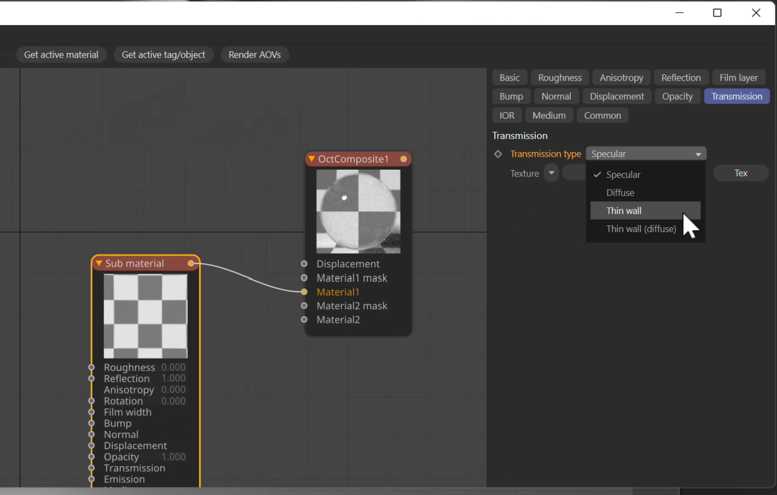 However, the sub material does not have the THIN FILM check box in the common tab.