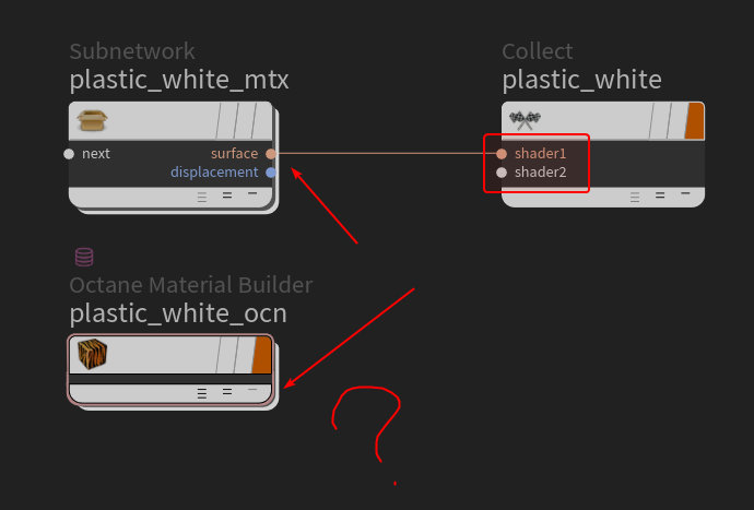The workaround to use the collect node is to use normal Octane Material>out material node then pin into the collect node.