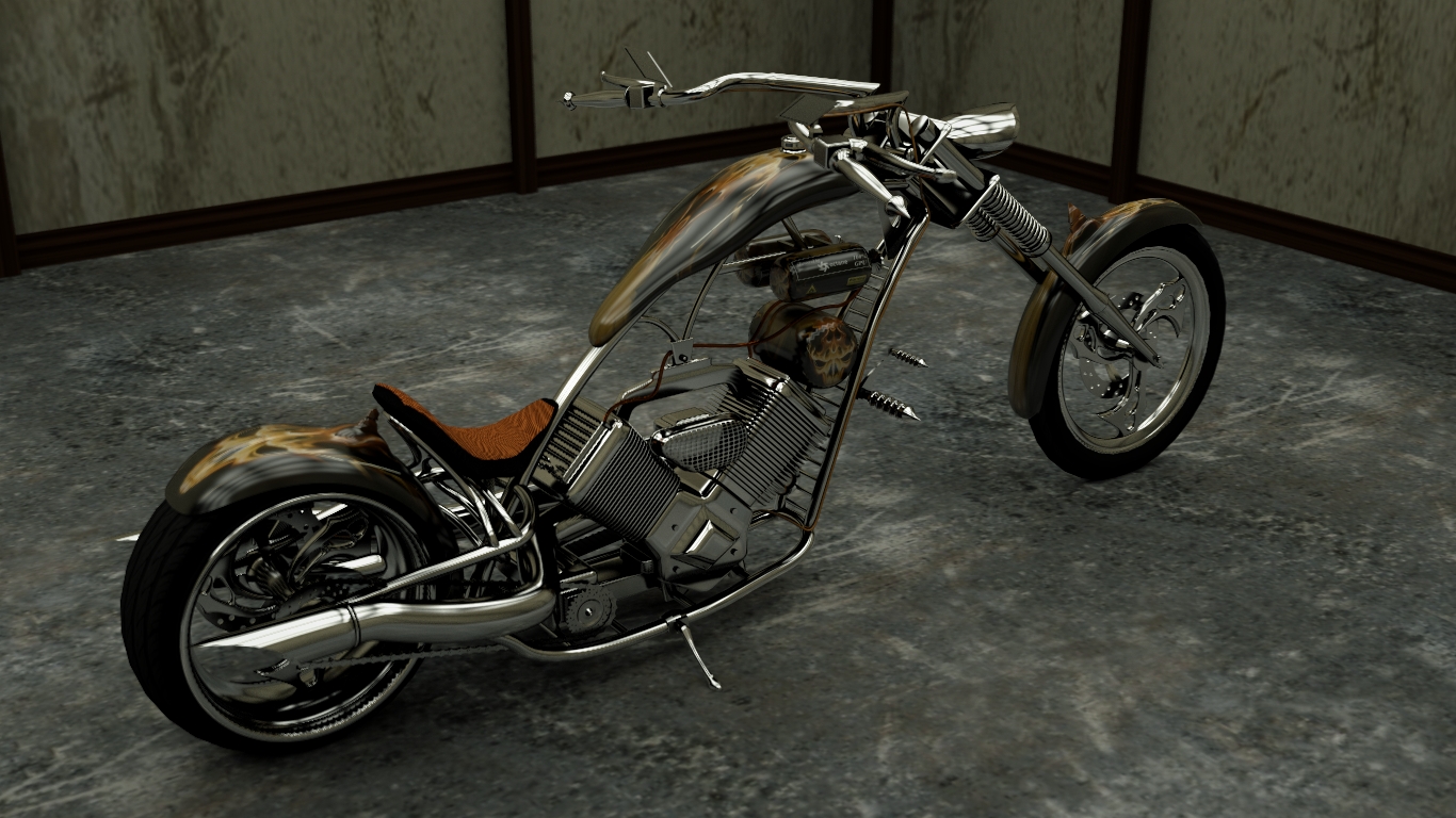 The Chopper here is one of about a half dozen or so I created a while back. (Addicted to West Coast Choppers and OCC and the such. hehe) This one has been drastically modified for the contest here. The Chopper Serise is broken up into components like Gastanks, Fenders, Frames, Tires, Etc. I once envisions selling the collection but I think I will just put it out there somewhere for people to play with one day. :D