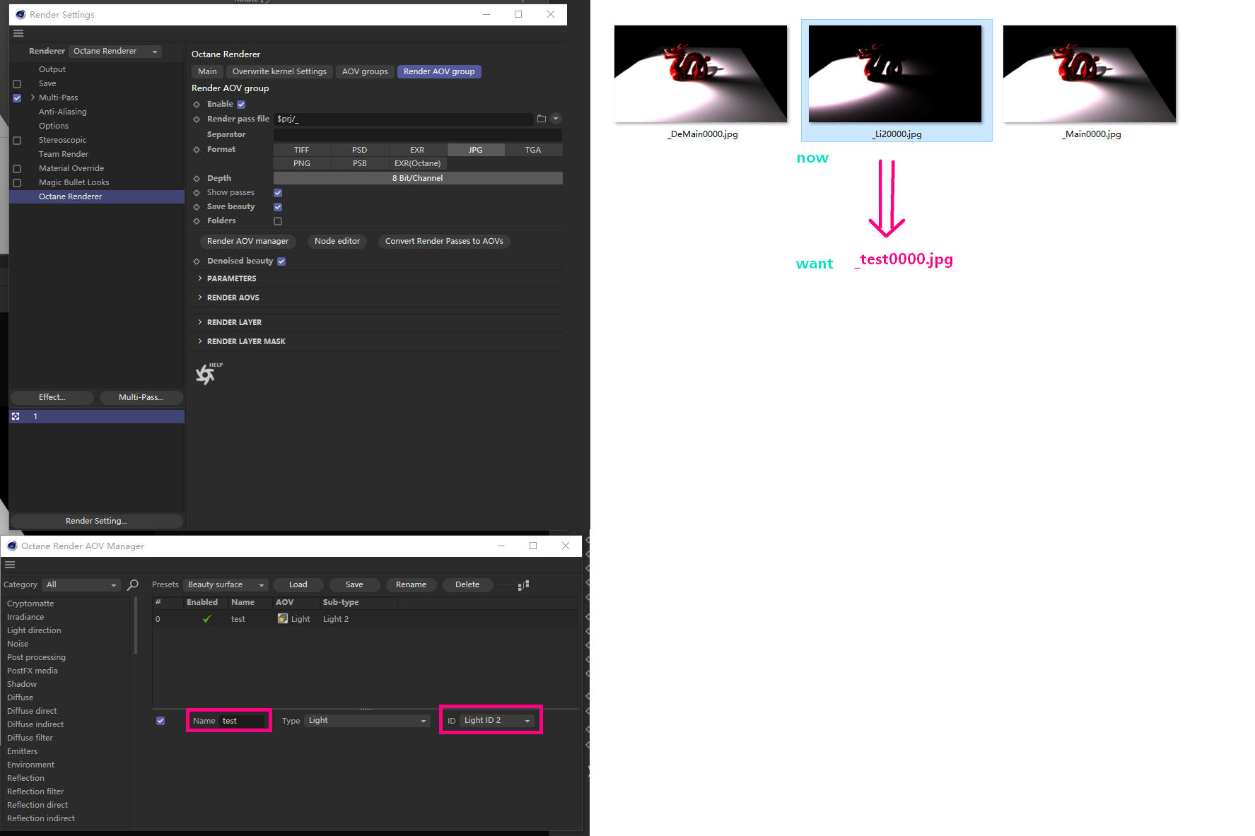How to use a customized name, as an output name, in AOV