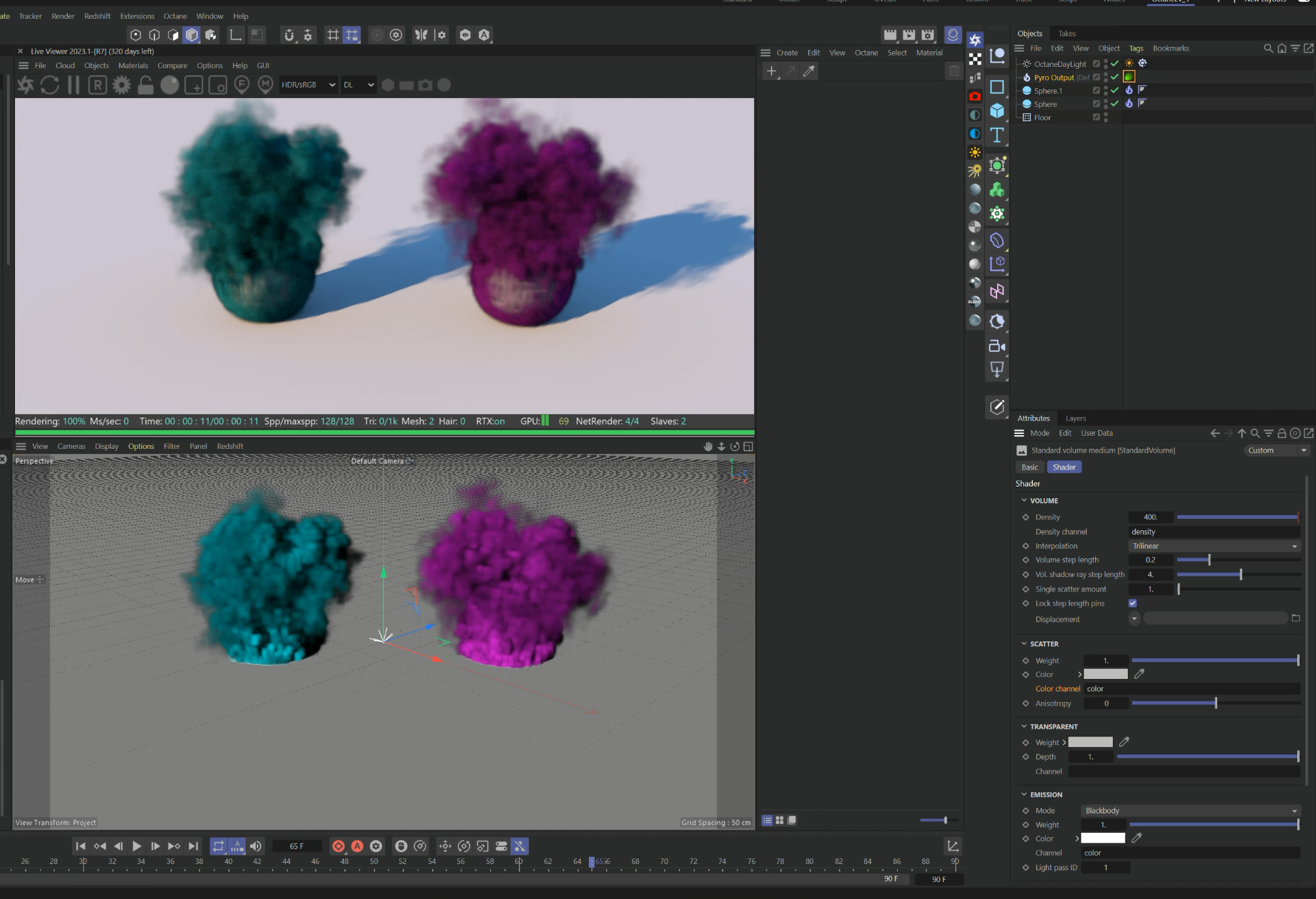 C4D Pyro and Octane - mixing of colors possible?