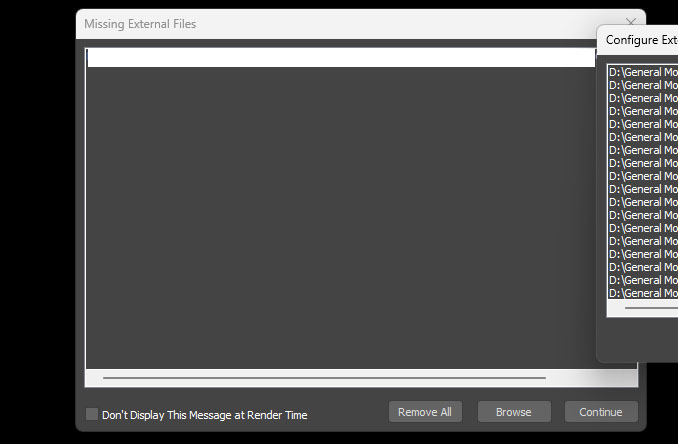 Missing external files dialog doesn't work with octane (after restart all bmps are missing again). One has to manually go to each octane texture with a missing path and direct octane where a bitmap is. Can this be fixed?