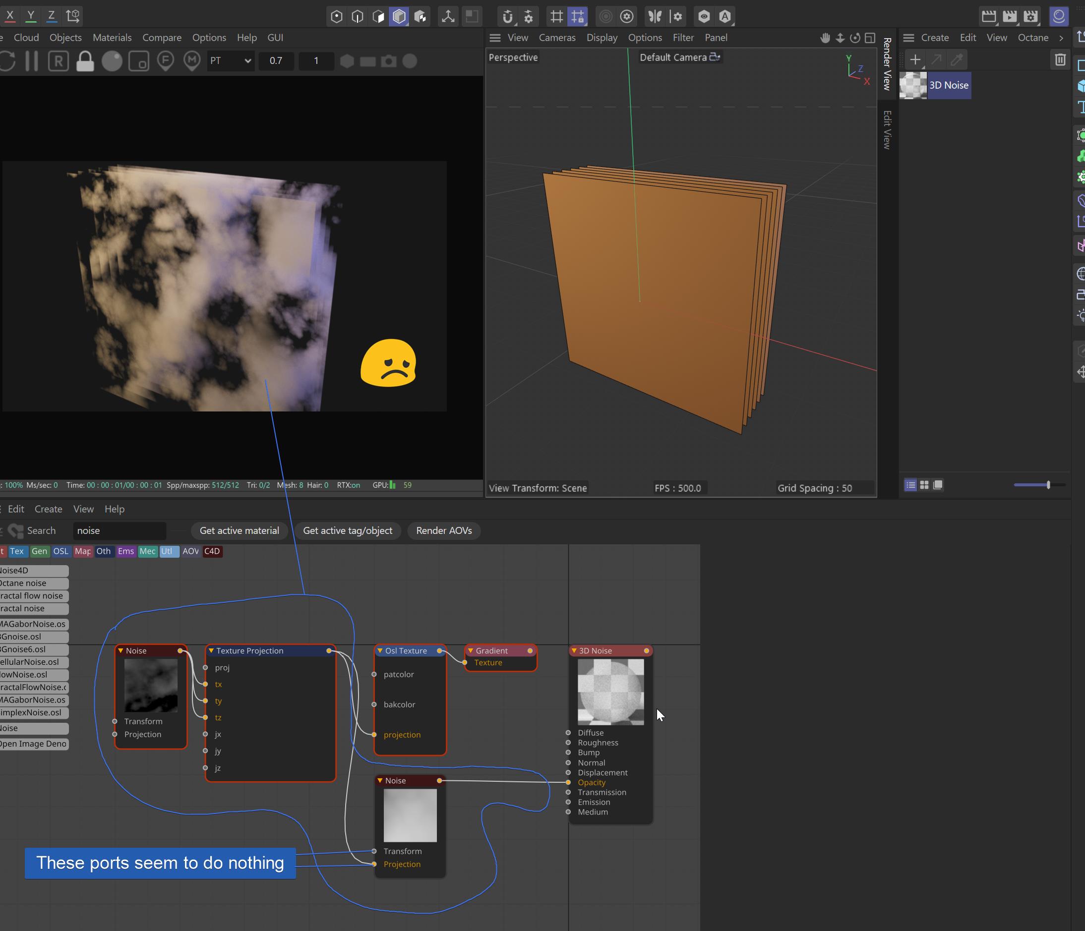 Can someone confirm this? Do the transform and projection inputs on the OSL version of C4D noises not do anything? Why are they there if they don't work...