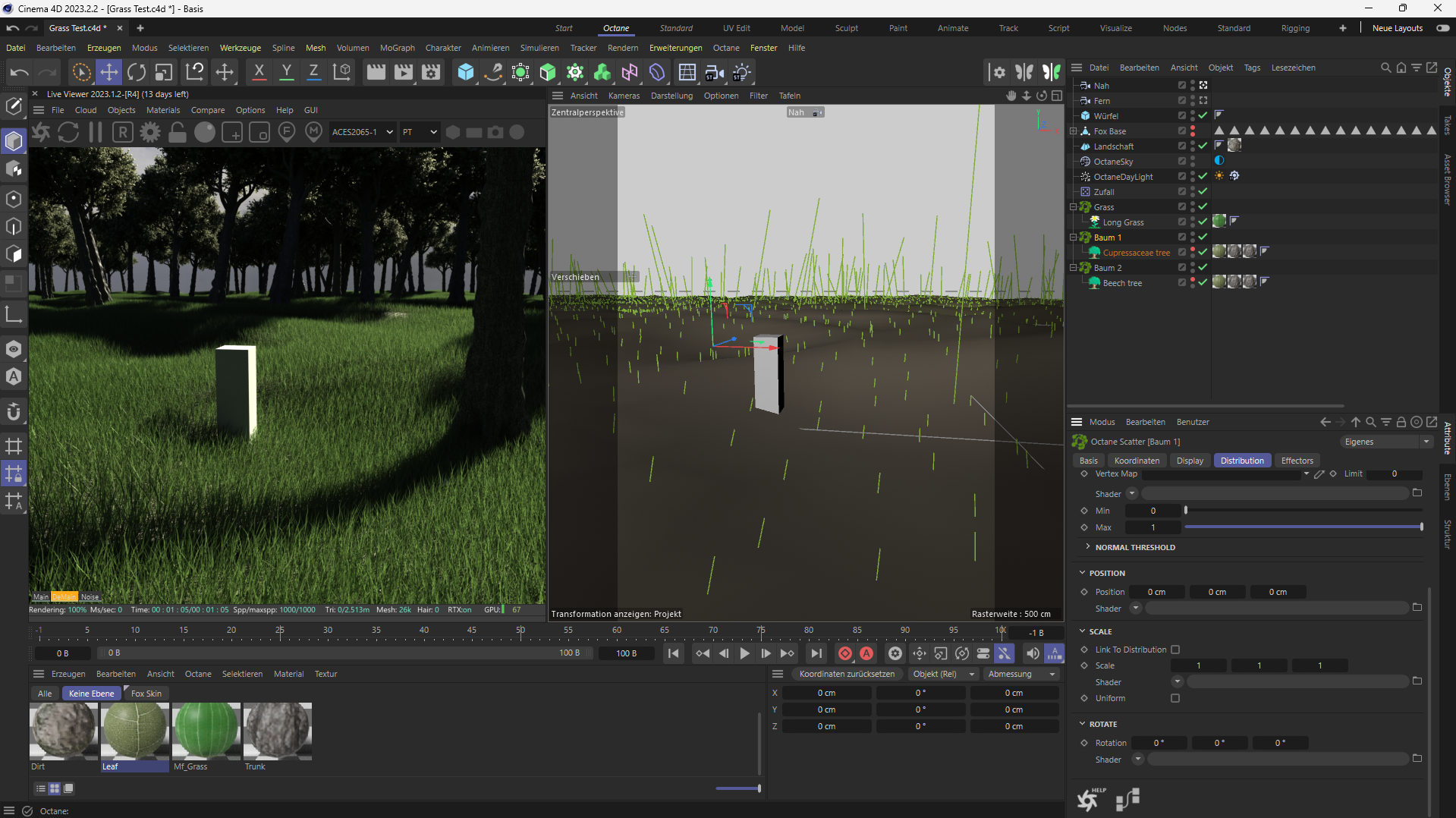 But for leaves and grass, my suggestion is to use an Universal material, to be able to work with one single material with all the necessary characteristics, and in this way, you can change the Transmission type to "Thin Wall Diffuse", perfect for leaves and grass blades: ciao,
