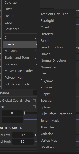 From C4D Effects Shader tab only Spline works fine in Octane. Interesting why others doesn't work here.
