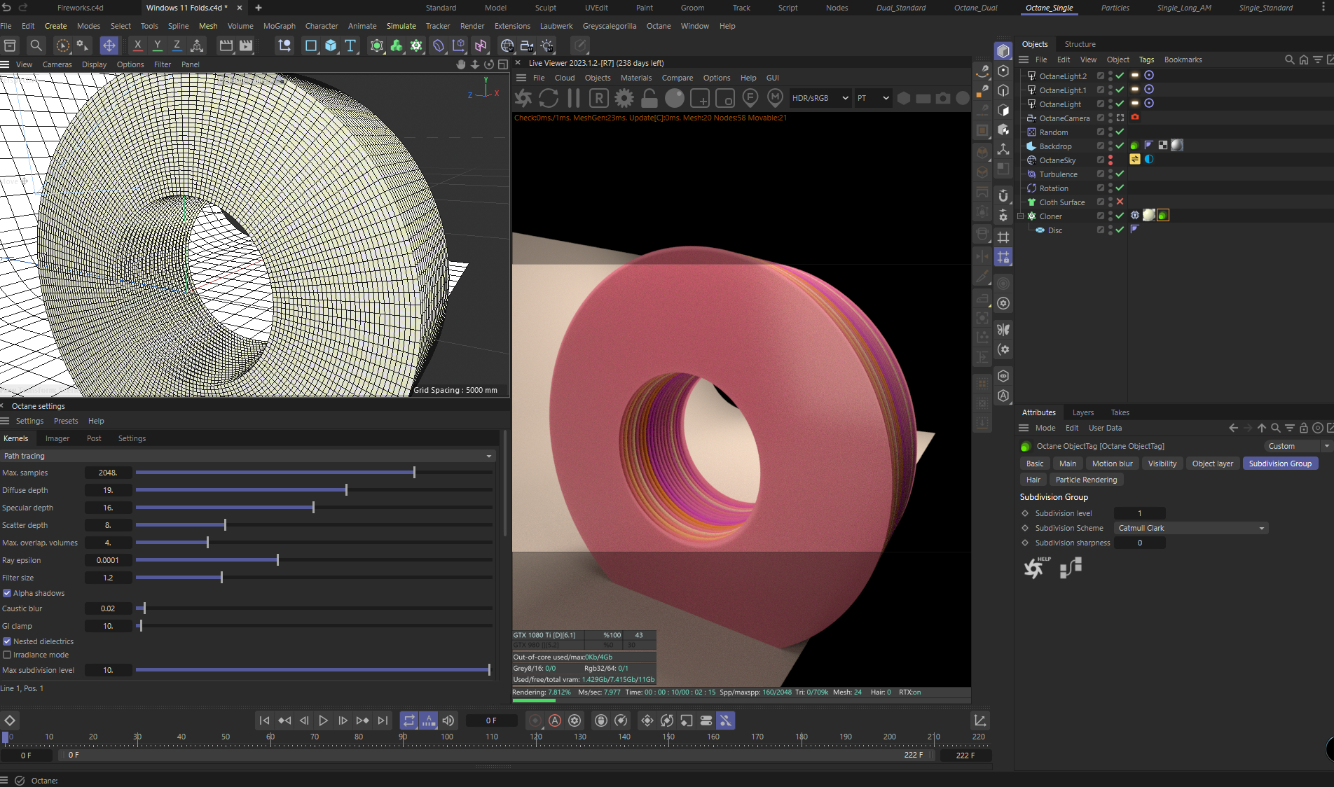 I was trying to create the windows 11 background using a cloner and some cloth discs, but the shader doesn't work with the Cloth Surface generator.