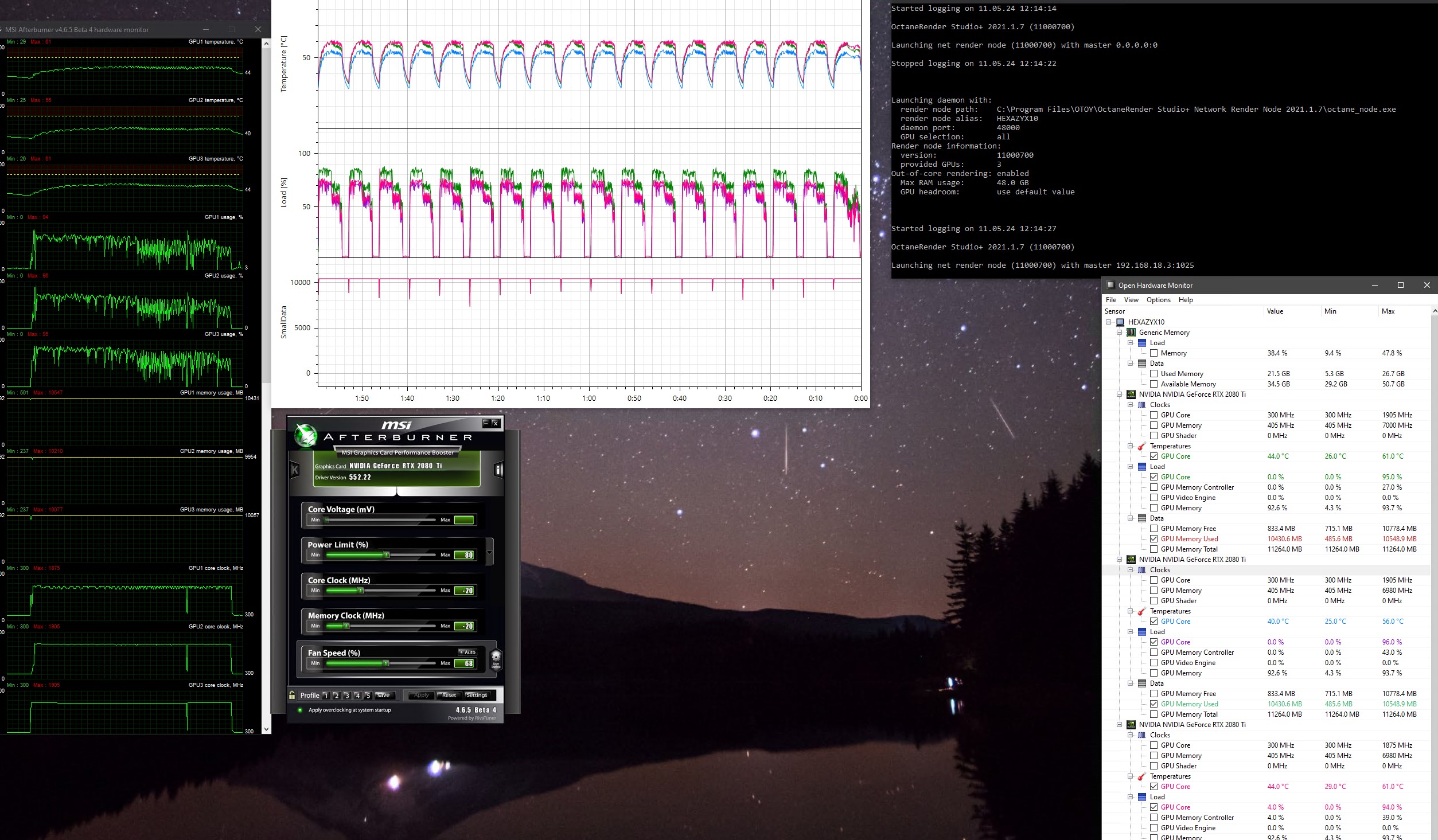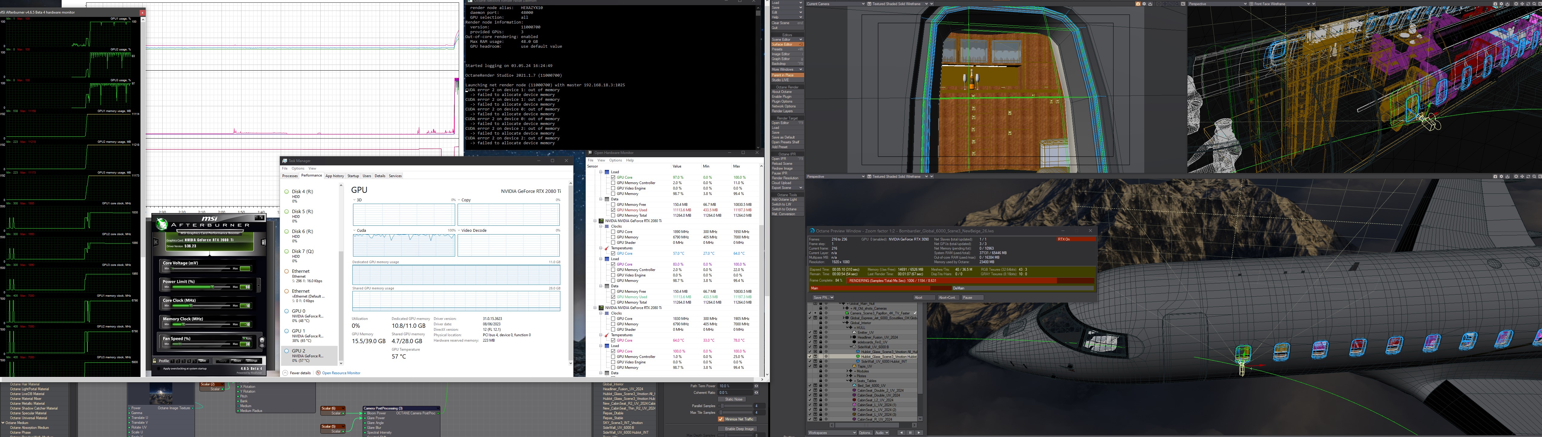 Net render : MB Asus Pro WS W790E-SAGE SE - XEON - 128GB - 2 x RTX 3090 - 3 x RTX 2080TI