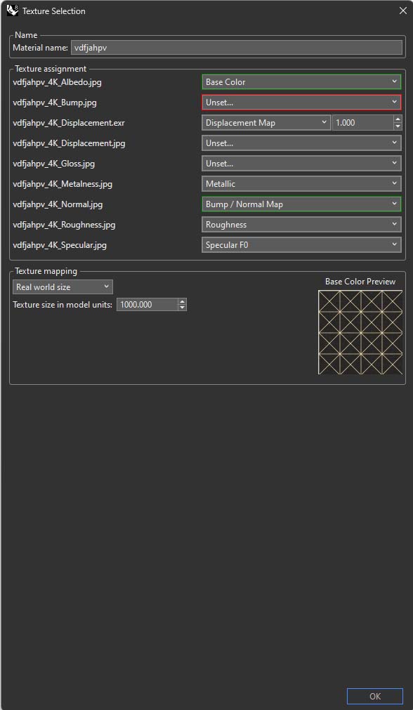 I am trying to find the best way to import downloaded Quixel Bridge textures into a Rhino octane material. I can import the files into Rhino's Physically based material slot easily using a zipped file of all the downloaded files, but when converting to Octane material it loses all the textures.