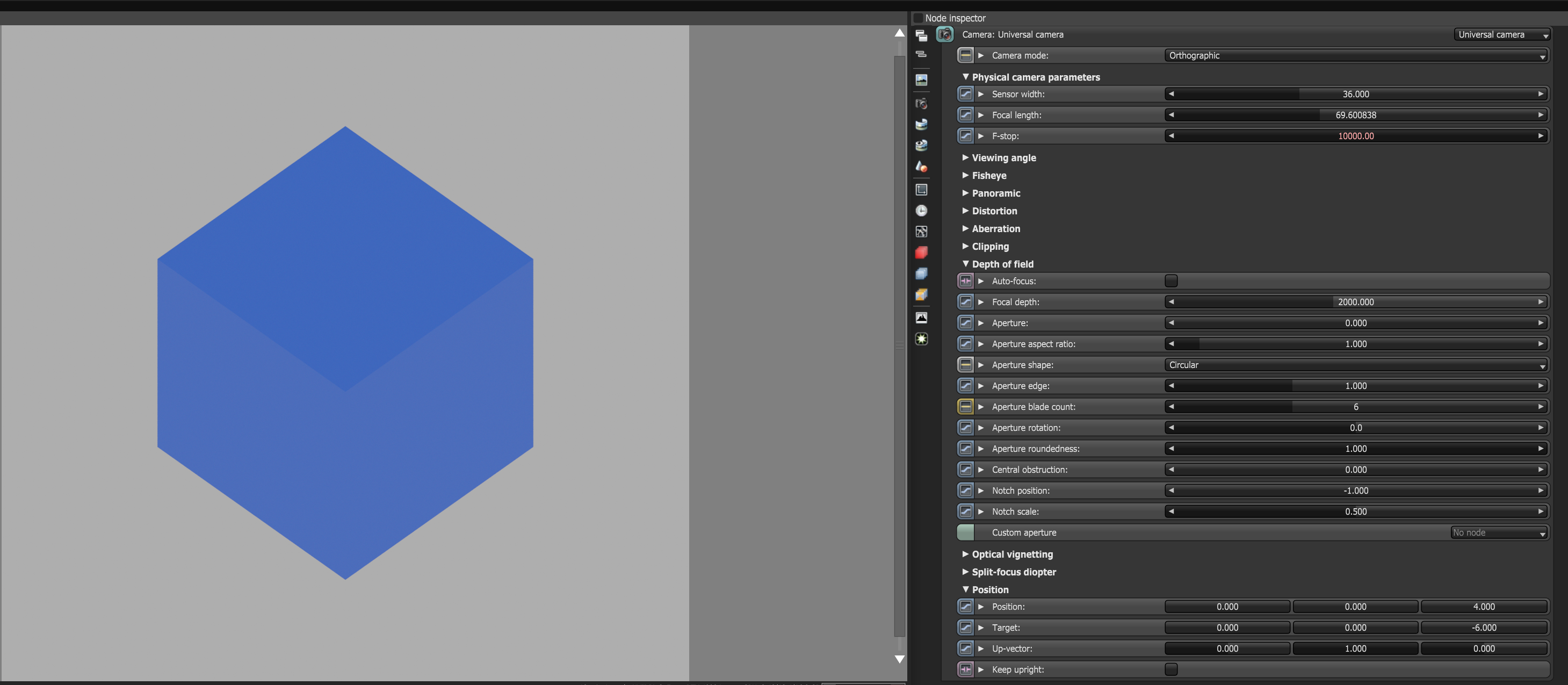 Focus Distance/Focal Depth appears to be incorrectly linked to the zoom factor in both the Thinlens and Universal cameras in Orthographic modes. This happens in the Live Viewer only (not in C4D's viewport). In Standalone, the Focal Depth does not affect the zoom factor (and it shouldn't). Having these linked makes it very difficult to manually focus while in Orthographic mode in C4D.