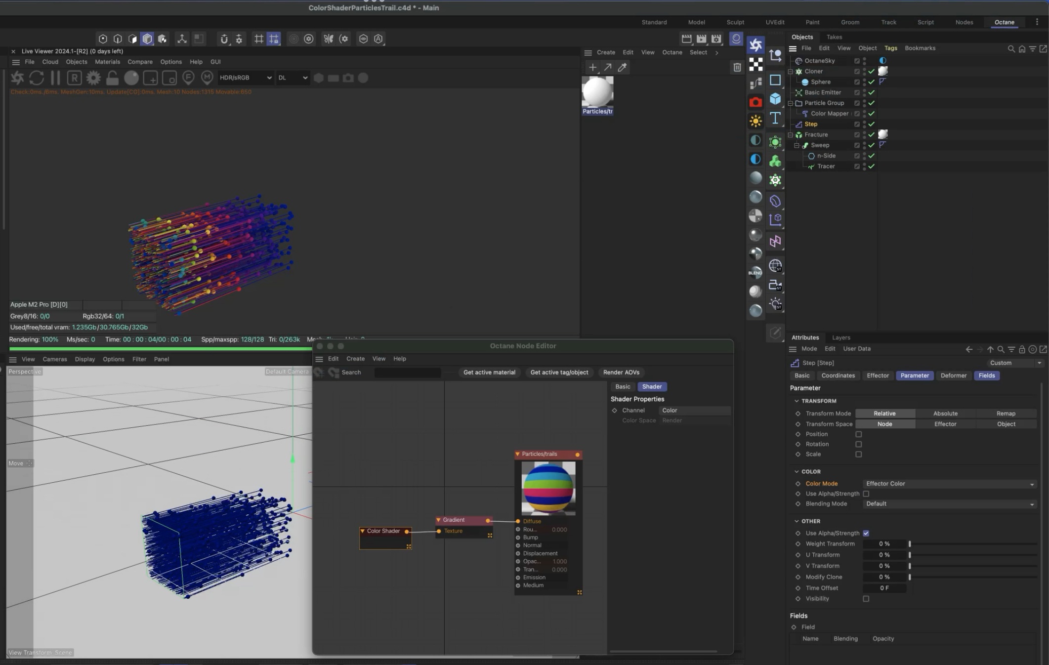 How to make tracers have multiple colors? And is there a way to inherit color from particles?