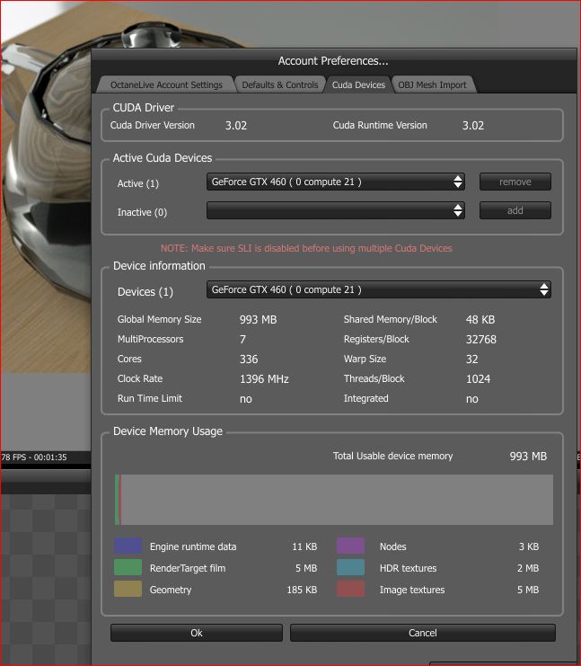 Thanks for the new version.I can finally use all 336 cores on my single GTX460.I also have to report that i can drop it to my task bar and still use other programs without the display feeling jerky.This may only because i have tried it with a simple test render of the teapot though.So i will keep you all informed.One query.I am using the latest driver 260.99 and i know you have compiled it using Cuda 3.2. However my account preferences screen wrongly displays Cuda 3.02 ? .You may need to look at that.Small point i know.