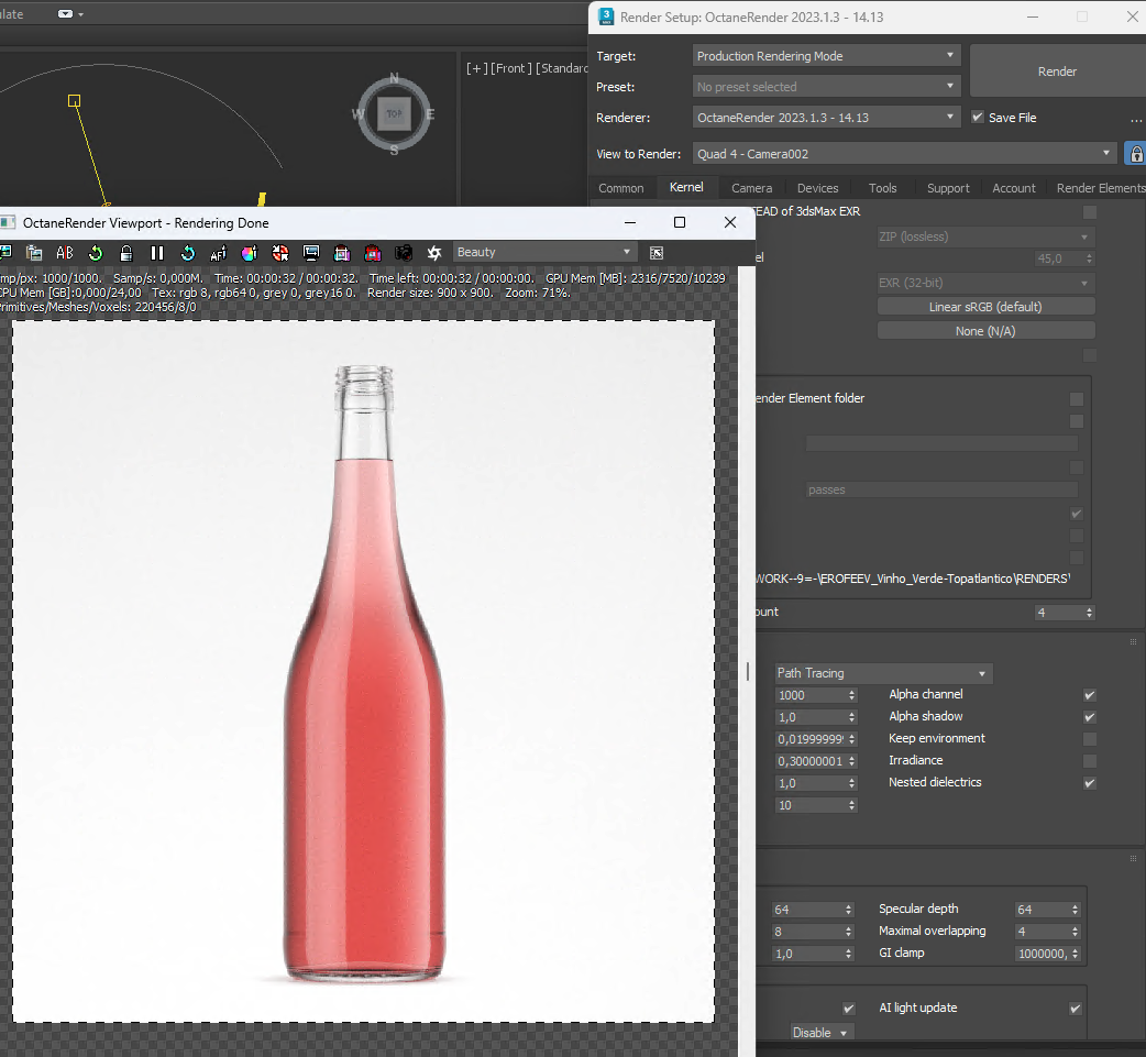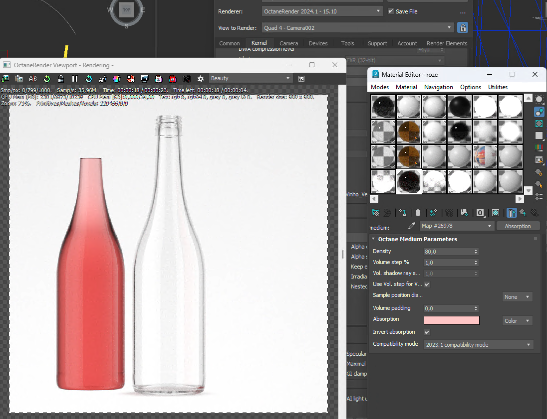 Octane 2024.1.0: Octane 2024.1.0 - same object outside glass: