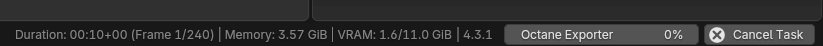 I'm using the custom build, Blender with Octane 29.16 ,the scene is a 1.49GB blend file, 288 frames total, and I've been trying to export only 1 frame to test it before exporting the entire frame range, but cannot get it to do even that. I've had issues in Houdini with trying to export a frame range different from the one set in the scene, could it be that if I have a range of 1-288 and try to export 1-3 instead of the full range that it causes issues in Blender?