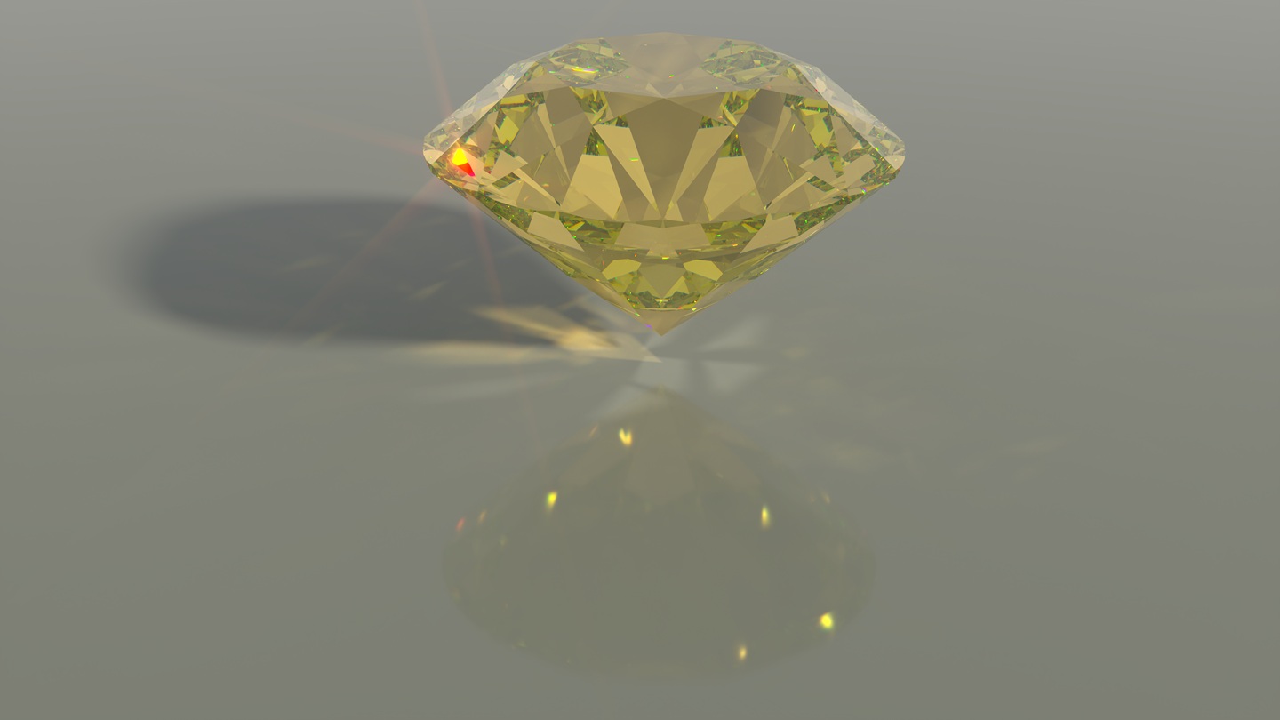 /// Two yellow diamond's types (Standard - 2014 and Brilllant - added by Blender) on glossy ground@roughness of 0.01 /// <3 :D