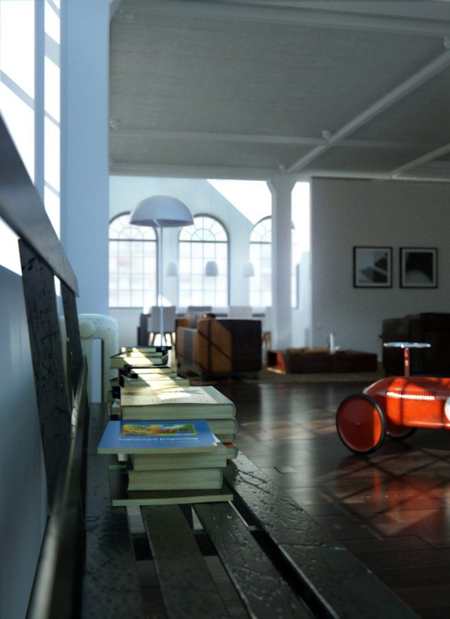So this time I wanted to focus on light trying to get good indoor illumination, well I started with a simple test scene and you know, once I begin to model I can't stop so I came out with a more complex scene based on a restructured old factory concept with mobile walls to reorganize space. More images will come later on.