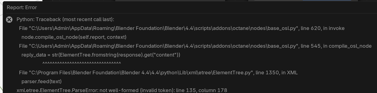 File "C:\Users\Admin\AppData\Roaming\Blender Foundation\Blender\4.4\scripts\addons\octane\nodes\base_osl.py", line 545, in compile_osl_node
