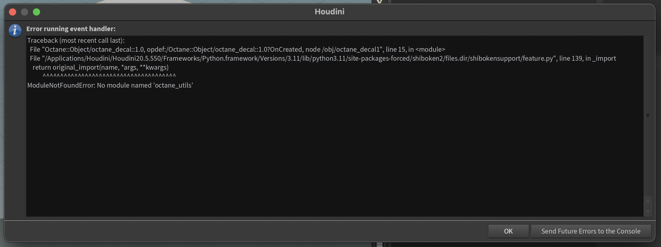I’m on Octane 2025.1 for Houdini 20.5.550, macOS 15.4.1.