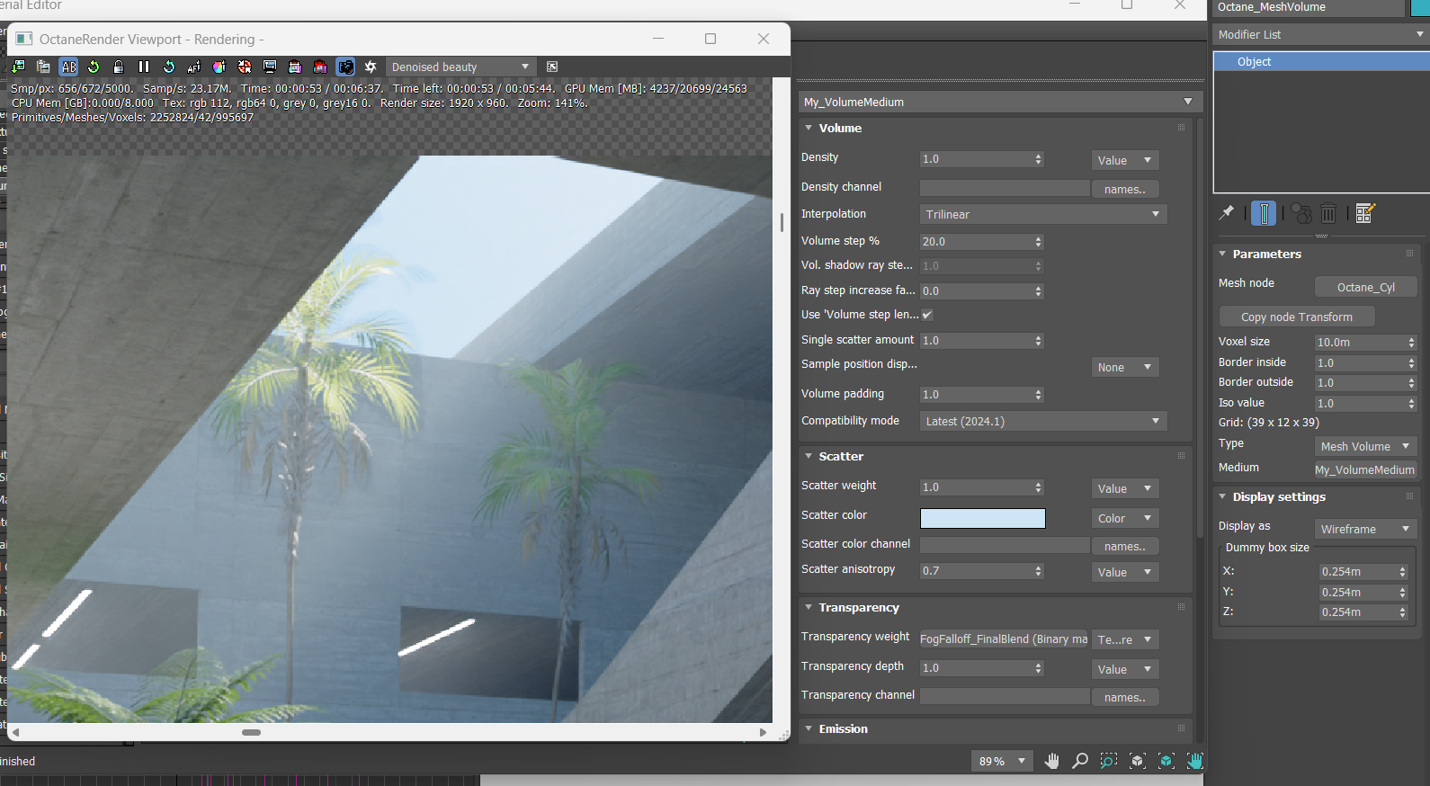 - Using a certain volume step % when you have materials with opacity maps such as plant leaves can cause ghosting/fog occlusion around geomatry with that material applied