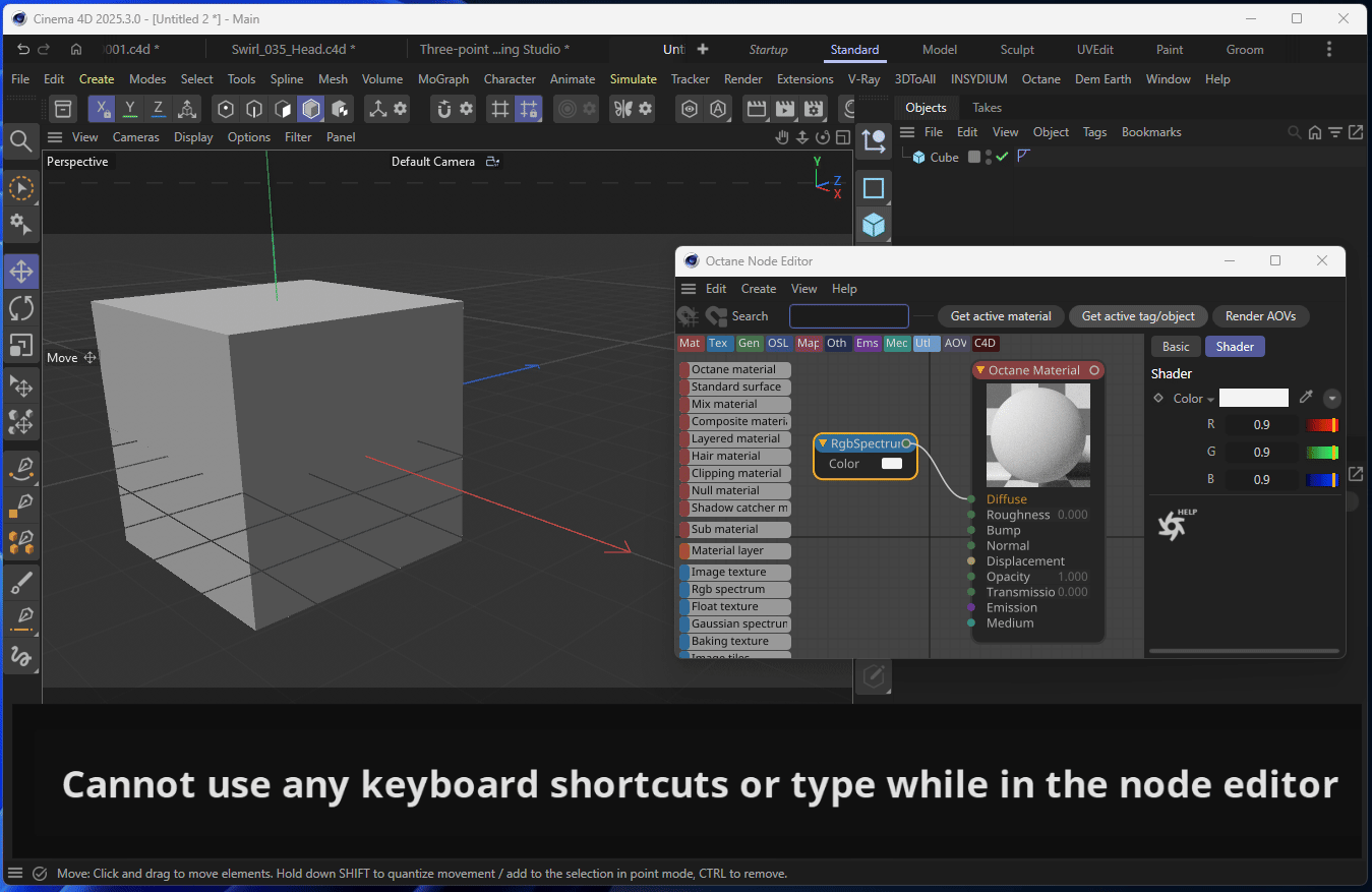 Octane node editor not responding to keyboard when active