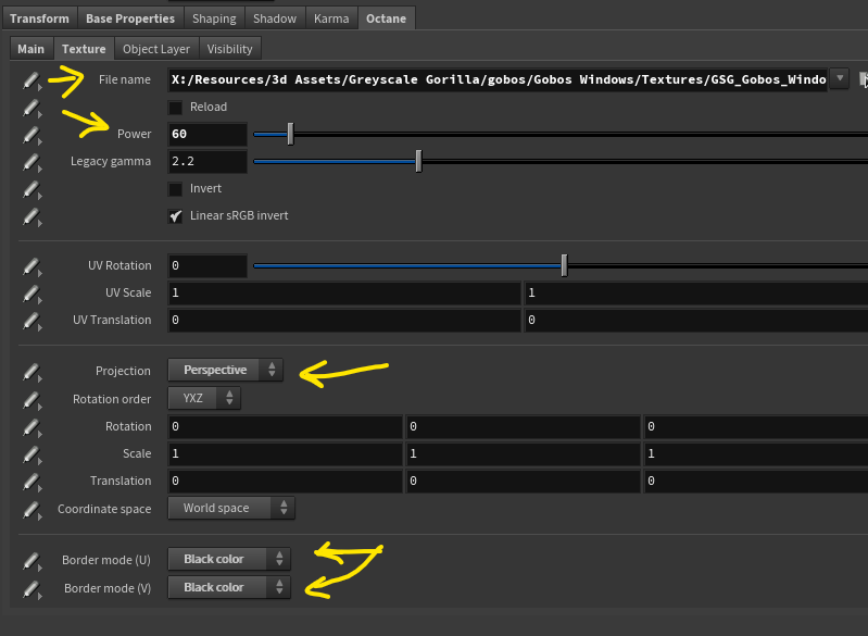 So the way to get gobos working in solaris octane:
