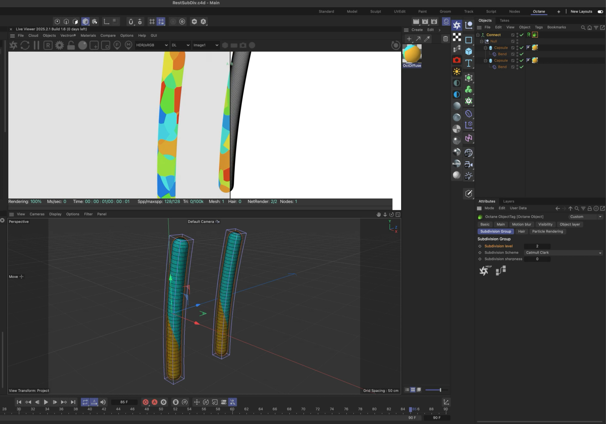 bepeg4d wrote: Thu Jul 03, 2025 10:32 am Hi, you need to use a Connect object, instead of C4D Subdivision surface, and use an Octane Object tag to add subdivisions only at render time: