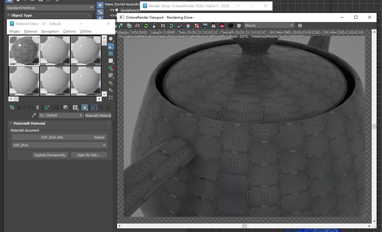 Teapot004 was converted from the original material 01 - Default (converted2, an Octane Material Switch)