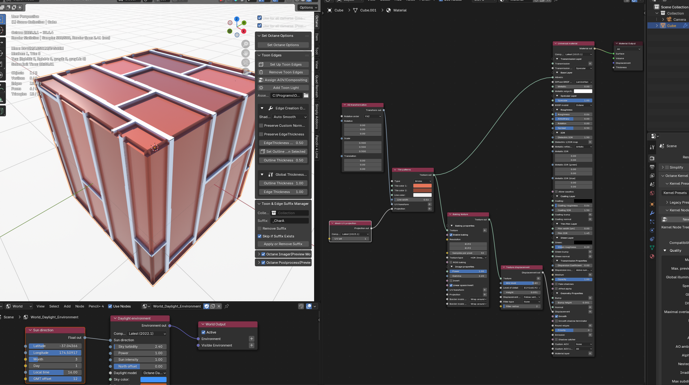 I'm having a problem with the latest version of Blender Octane (2025.2.1 - 30.6.2). To better explain it, I'll use a simple example. First, I'll explain the scenario that's causing this problem.