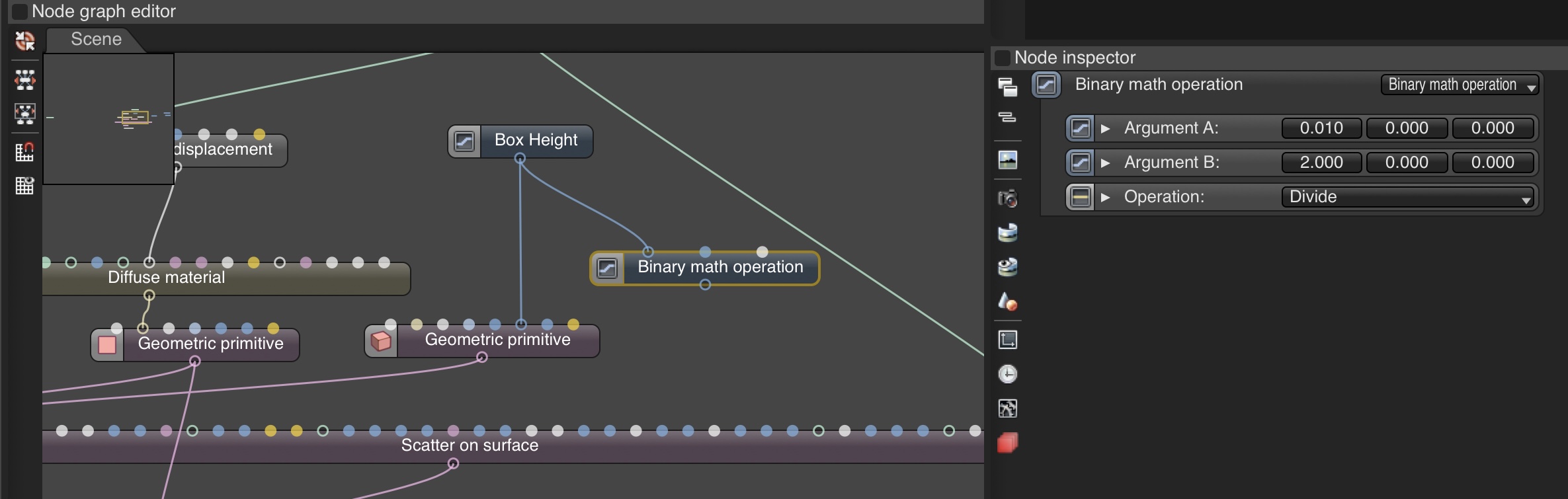 For "Translation min" value, we need to expand the Box Height value, then use a "Binary math operation" node to divide the Box Height by 2: