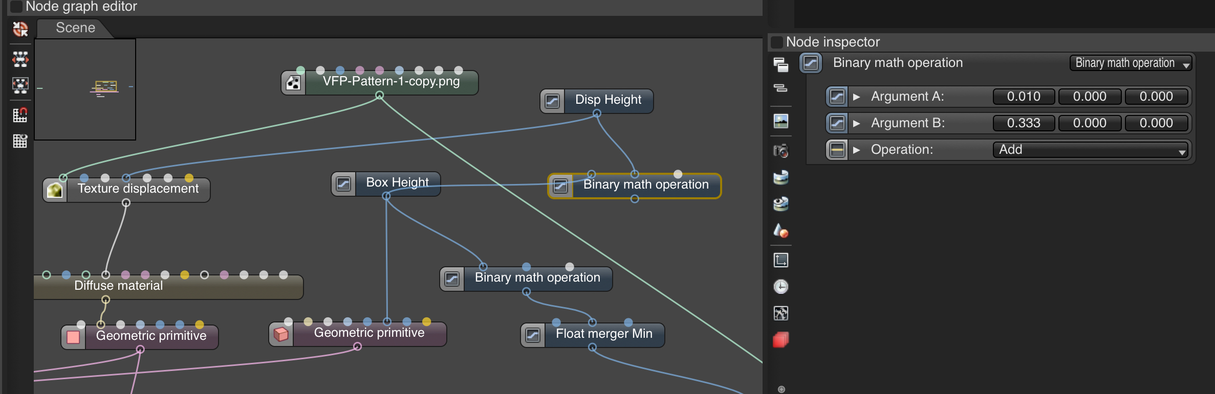 For the "Translate max" value, we need to use another "Binary math operation" node to add the Displacement Height value to the Box Height divided by 2: