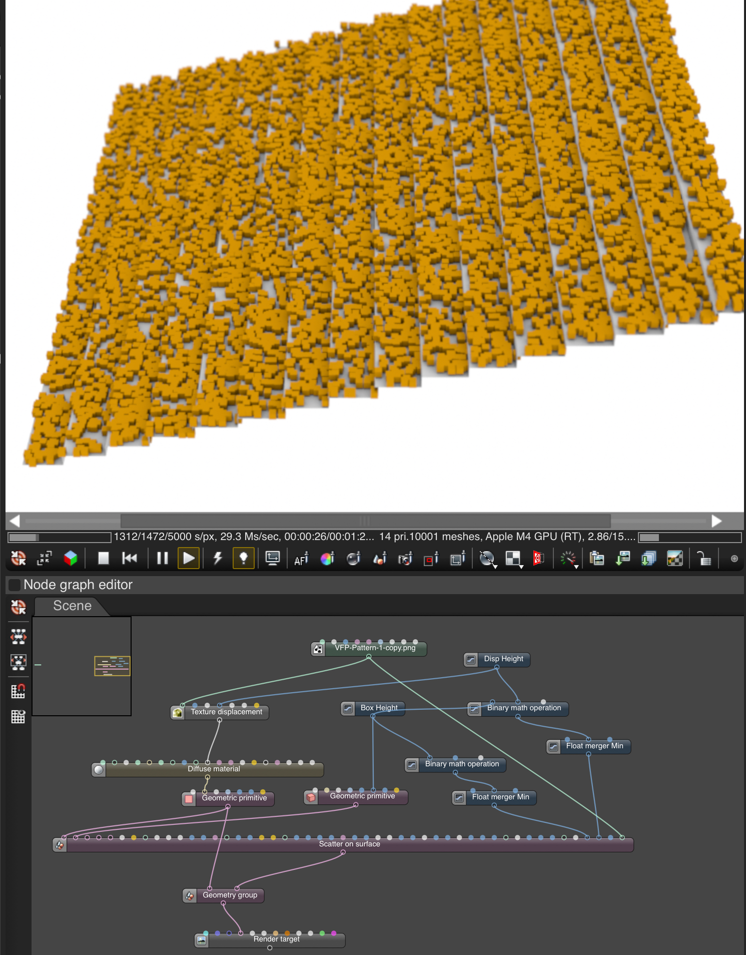 And that's it, now the boxes are following the displaced plane surface correctly, and you can change the Box Height or Displacement Height interactively.