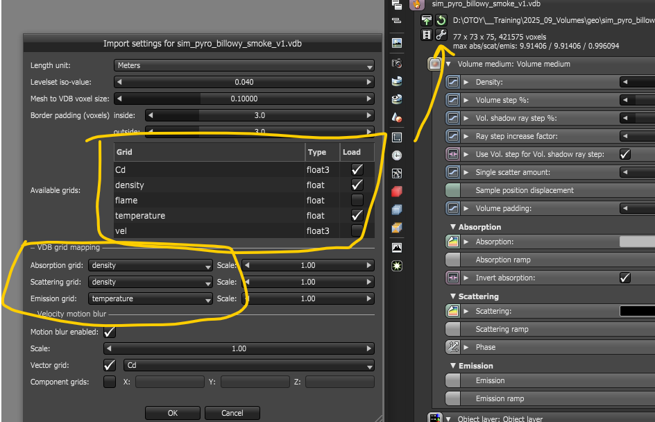 When I export from Houdini 21.0.440 to Octane X Prime 2025.3 the Material Standard Volume loses the density info. Attached is an image of it exporting a Medium Scatter correctly next to the incorrect Standard Volume.