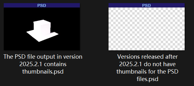 The PSD file output in version 2025.2.1 contains thumbnails.psd