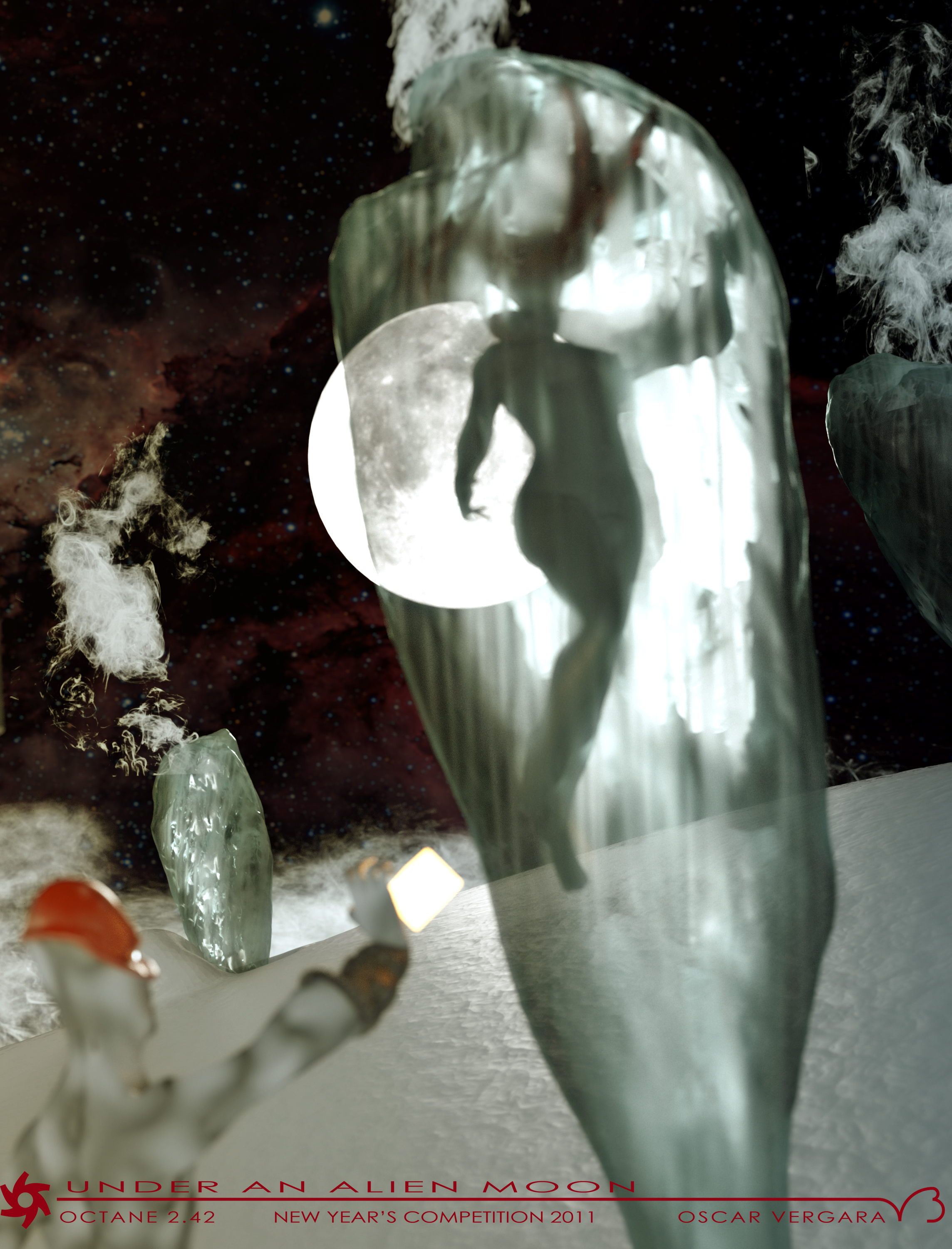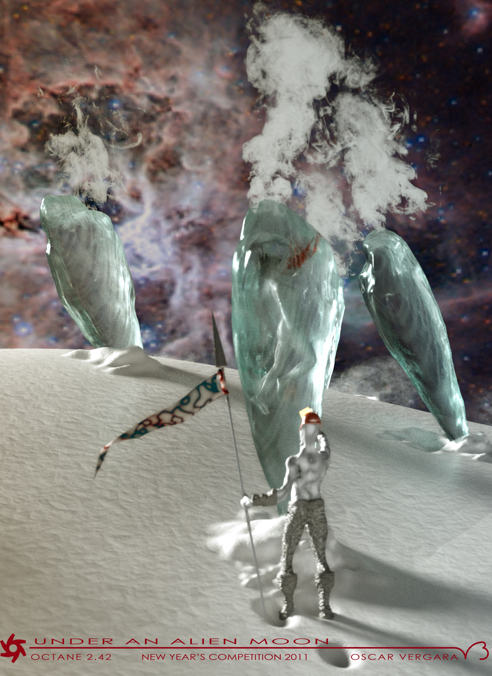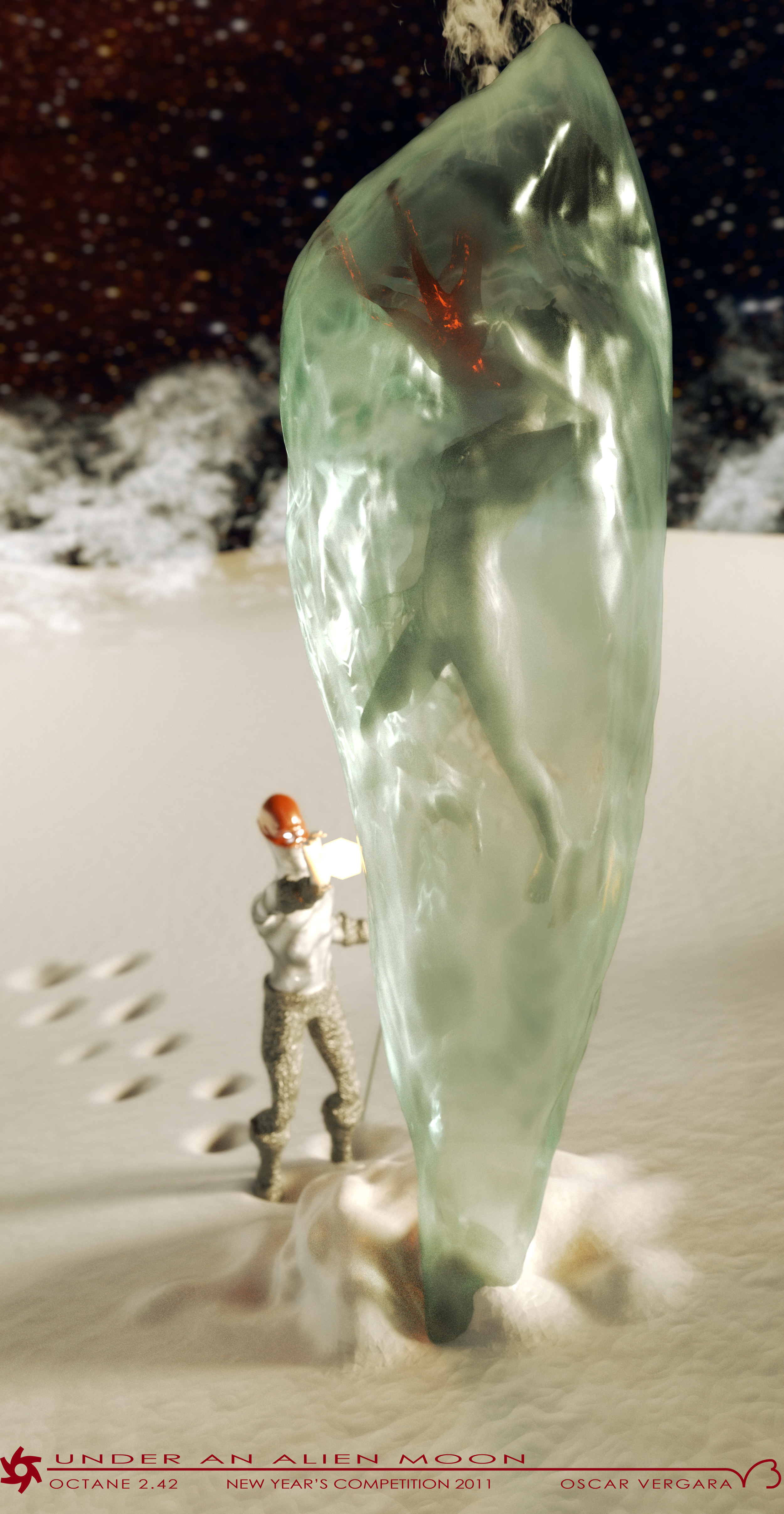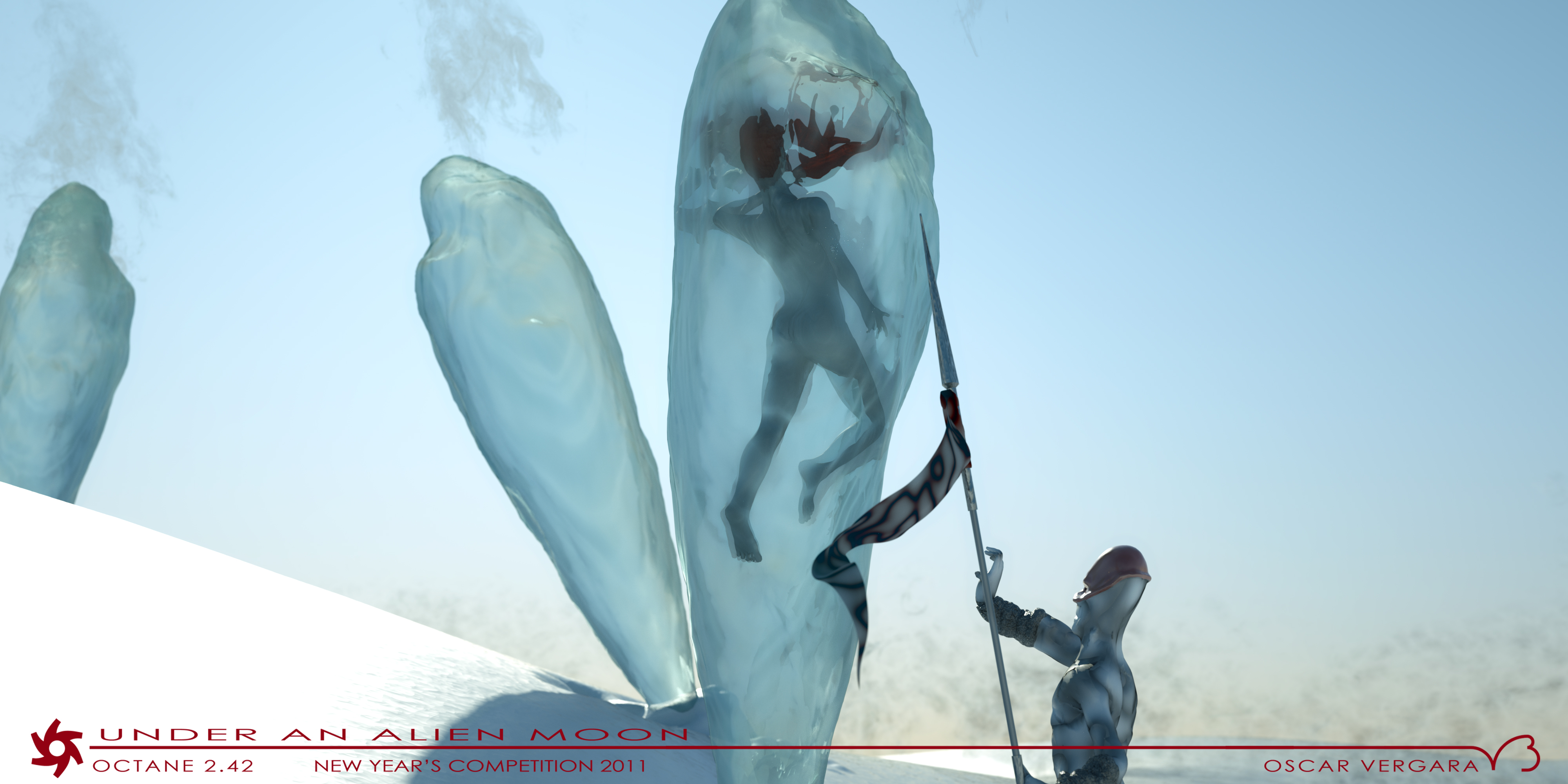 Mostly I wanted to do a moon lighted scene, and make good use of the new tricks of octane as the light thru translucent materials tweaking their opacity, as in the ice blocks, the fog and steam and the blood.