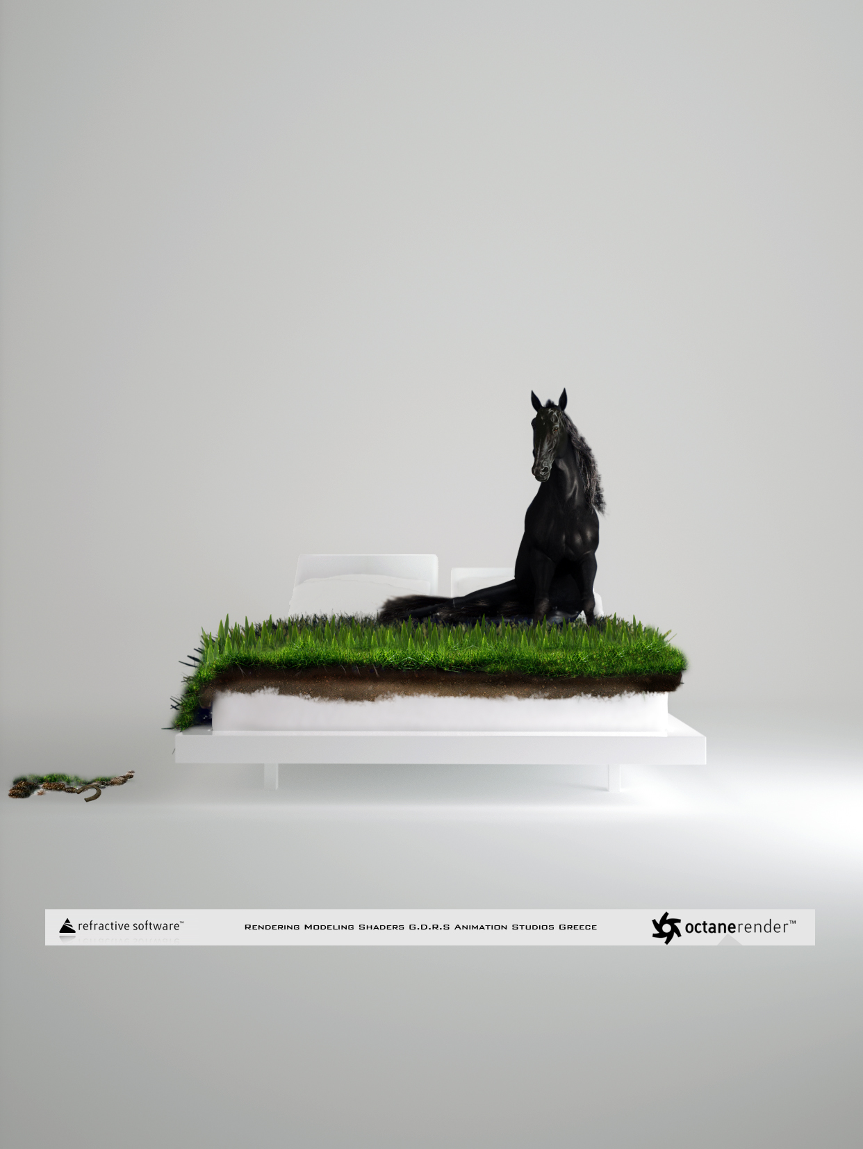 The idea behide the concept was that "even horses preffer the **** brand, and they have a matress hidden under the ground.
