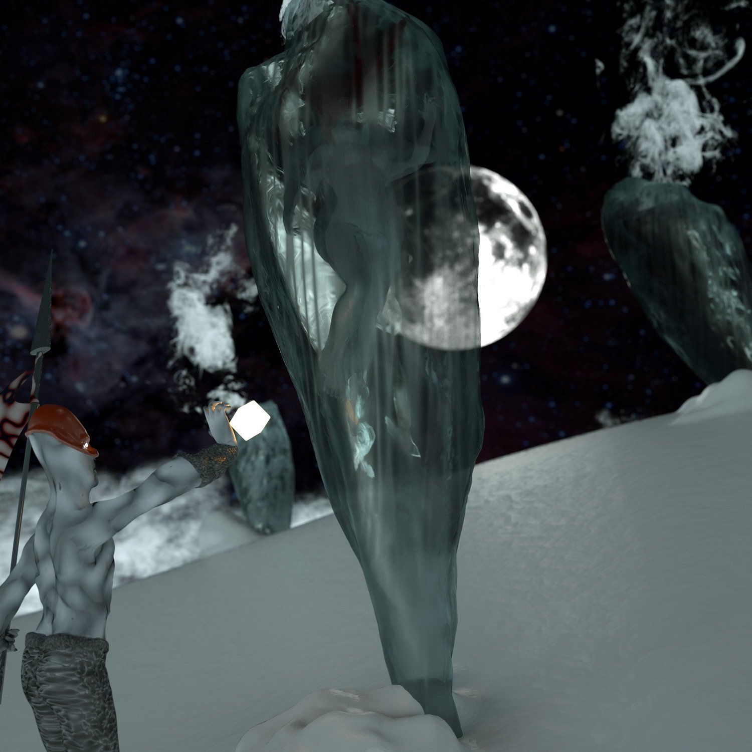 Well, for this year's competition I wanted to do something different from my usual archviz stuff. I've always liked sci-fi, and it came to my mind some classic 50's literature, I threw some sketches. I knew I wanted to test the new features of octane, as light passing thru materials using opacity. I thought, hey, how about if the whole scene is light by a moon, I mean an actual moon emitting light (well not actually physical correct, but almost). So I found a neat moon map I used as texture emmitter http://celestiamotherlode.net/catalog/s ... ator_id=10. Then I used Sculptris to model the whole scene and hand paint the masks for the materials. After riggin the alien and the girl in max I exported the whole thing to octane and the fun begun. Finally I've made used of macros and being able to pan around the node graph I've had tons of fun playing with the materials. Besides the steam maps (modified from some smoke images from http://cgtextures.com), the moon and the characters material mask the rest is done with procedural textures. Probably the one I've enjoyed and like more is the ice one.