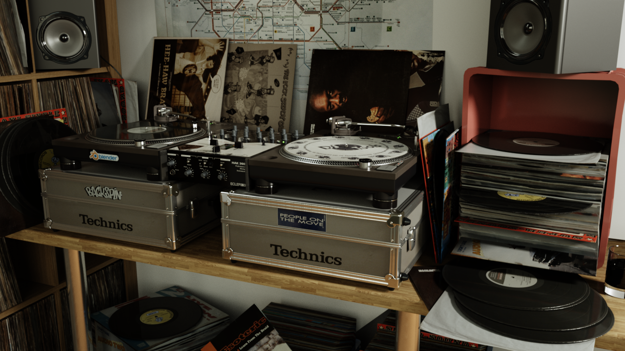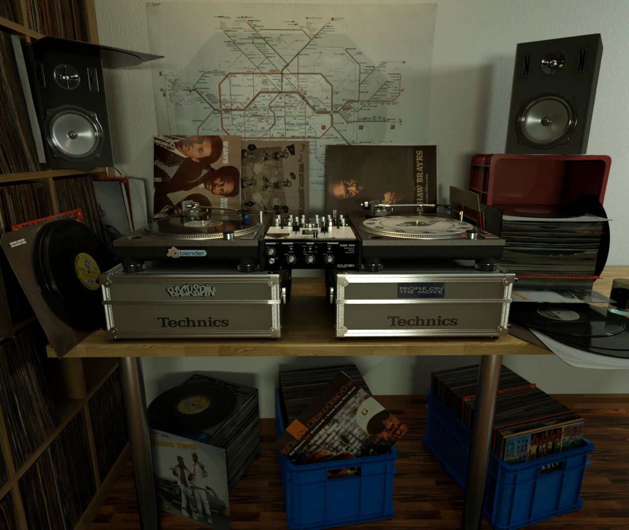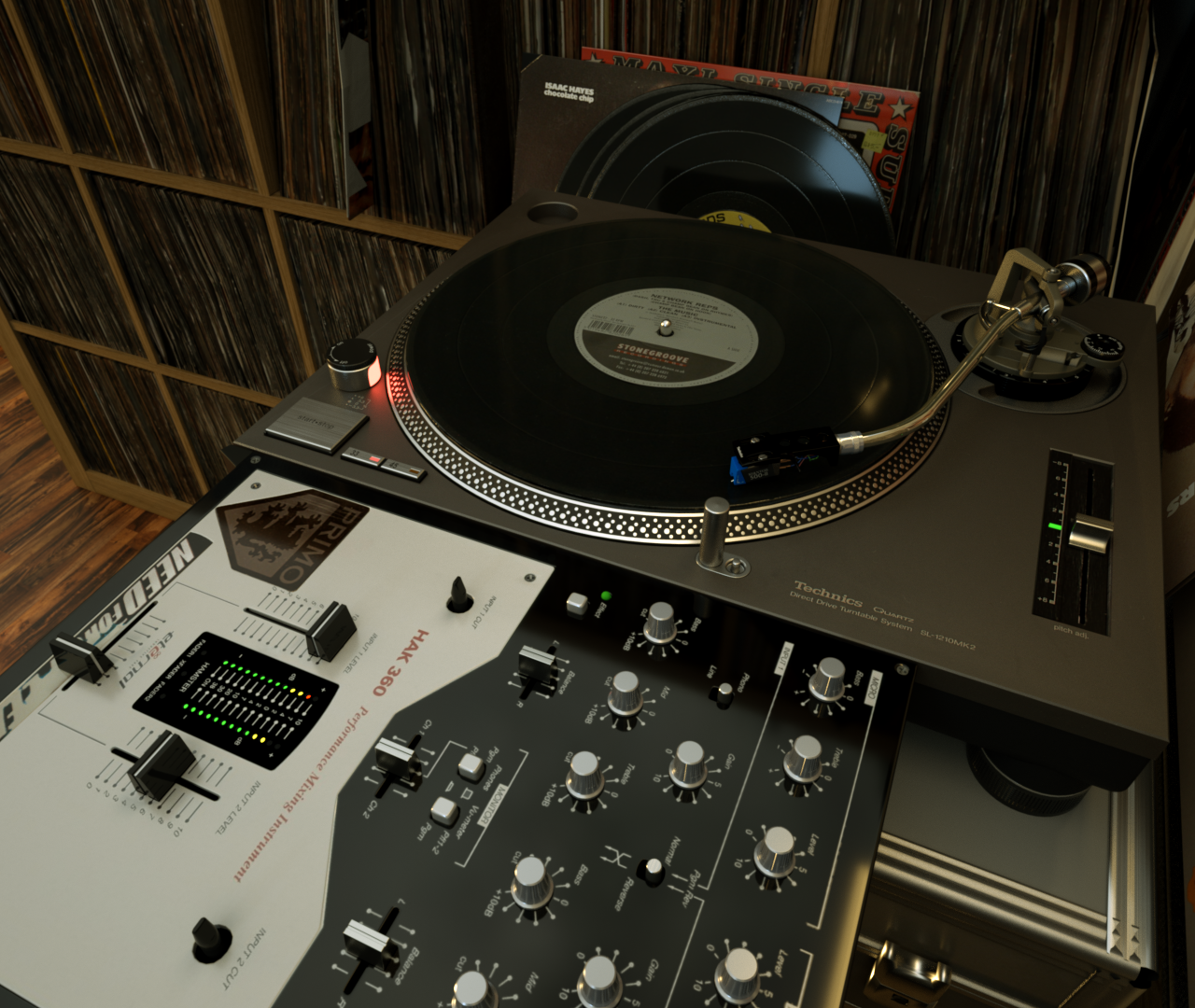 the cases/mixer/speakers/rack+vinyl where "day jobs" each. the turntables, they took some time, exspeacily texturing/image retouch was somehow very time consuming:)