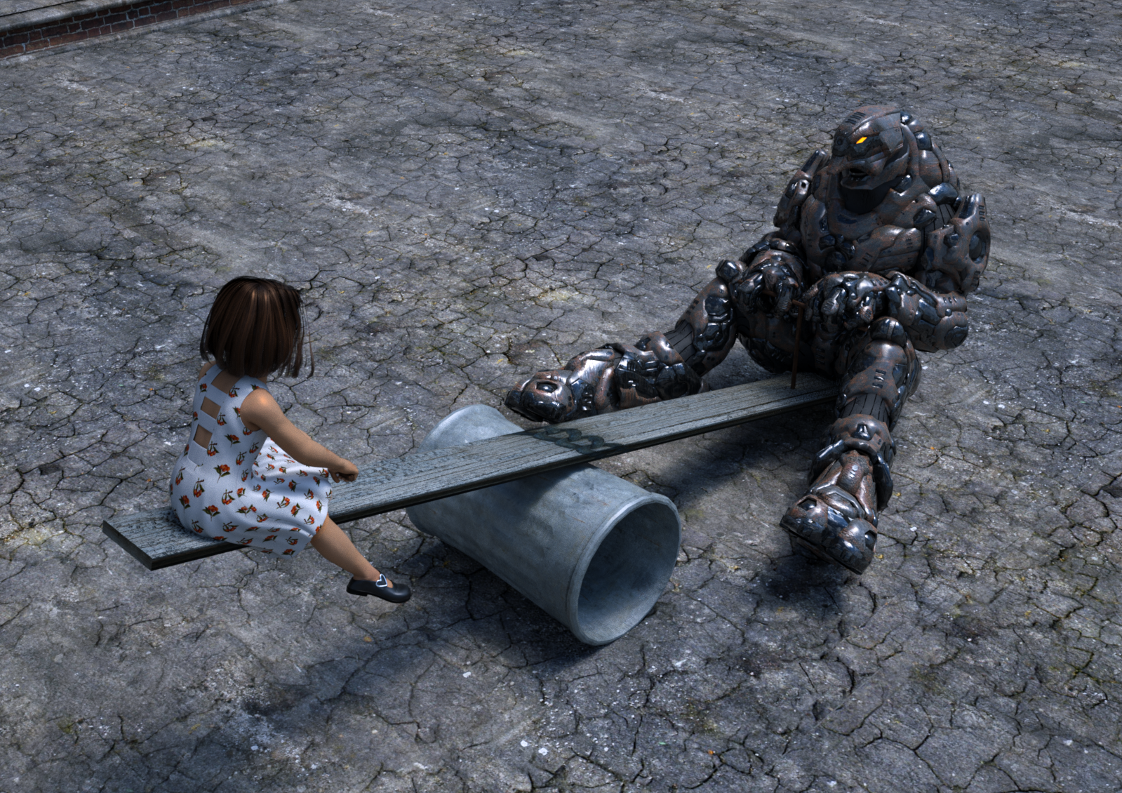 description: its a simple scene, a midrise apartment with central pedestrian street- with a small area as reflective pool, and low-height boundaries. its interconnected at upper levels with pergolas to give a more 'enclosed' feel...