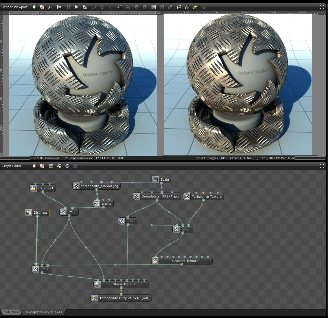 Now, the problem is that without nodes that manipulate numerical values, it's impossible to use just one input slide to give the user such an abstraction as "dirtiness". It would be possible though, if we could do math with floats. To give an realistic impression of dirt you must manipulate color, roughness, specular color & intensity and bumpiness - all in a different proportion to the input value - some of them inversely proportional (for example as dirtiness goes up, specular intensity goes down). IMO, we would need: