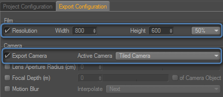 In the export configuration of the export plugin enable the camera export and choose the tiled camera. And setup the render resolution you want, but remember that the resolution of the final images will be 2/3/4/5 times higher, depending on the tile factor: