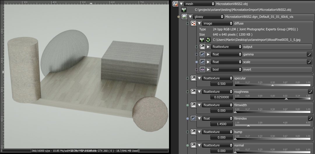 - Then created a folder c:\Users\Martin\Desktop\octaneimport and copied all texture files there. (The MTL file requests the texture files from there, for example: