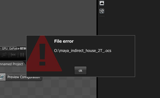 when i want to generate a new ocs file from octane( same scene but with a new name, for new texturing or rendering settings ), and when i choose, with maya exporter, this new setting file ( ie 'maison2_.ocs' like the picture attached ), it doesnt work ( look at the upperpicture attached to this post error message with 'maison2_.ocs' -> meshnode not useable ): but if i launch a manual rendering process of 'maison2_.ocs' directly after this error message, it works ( with the new settings ):